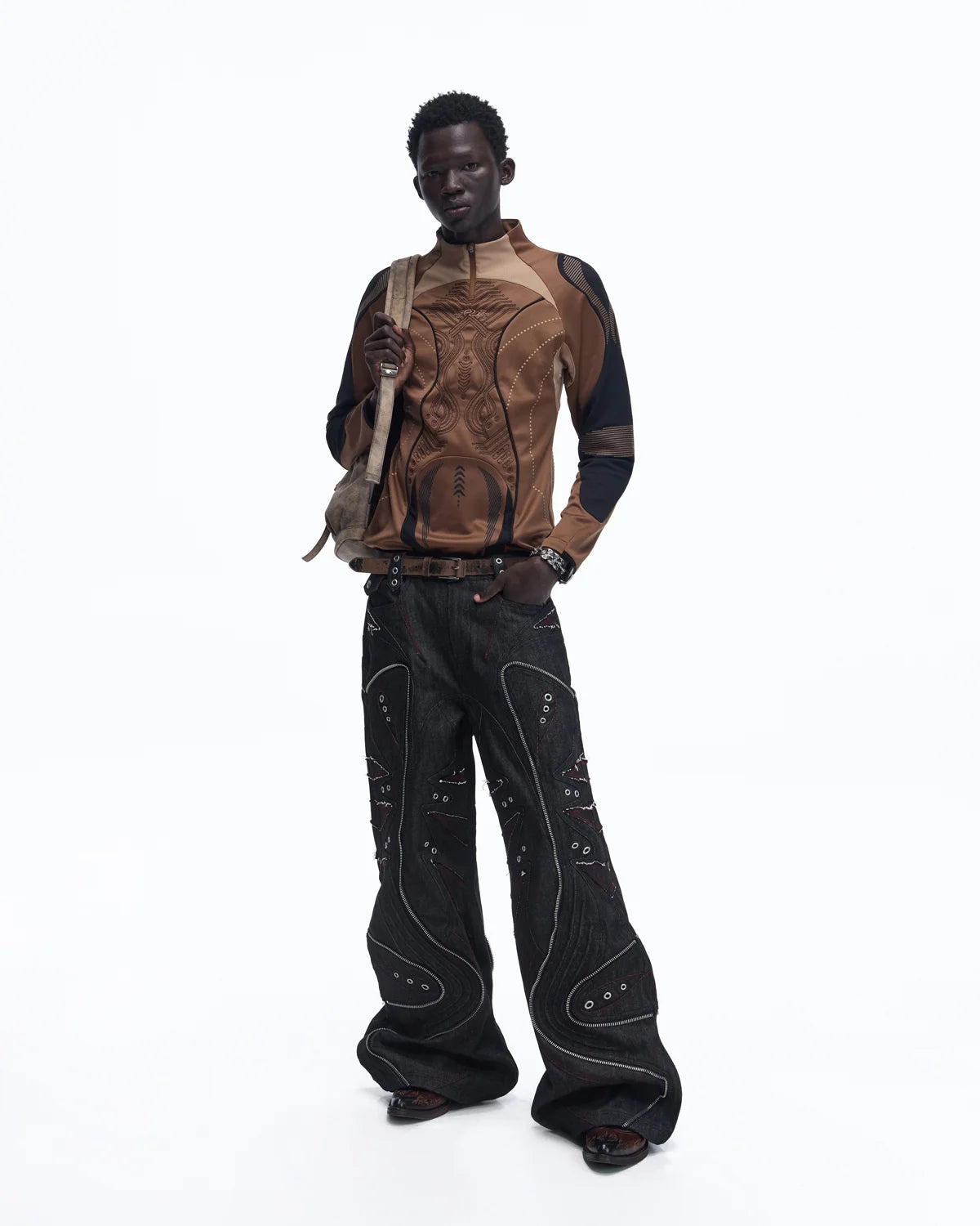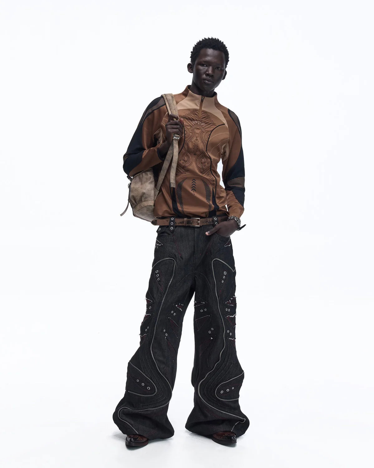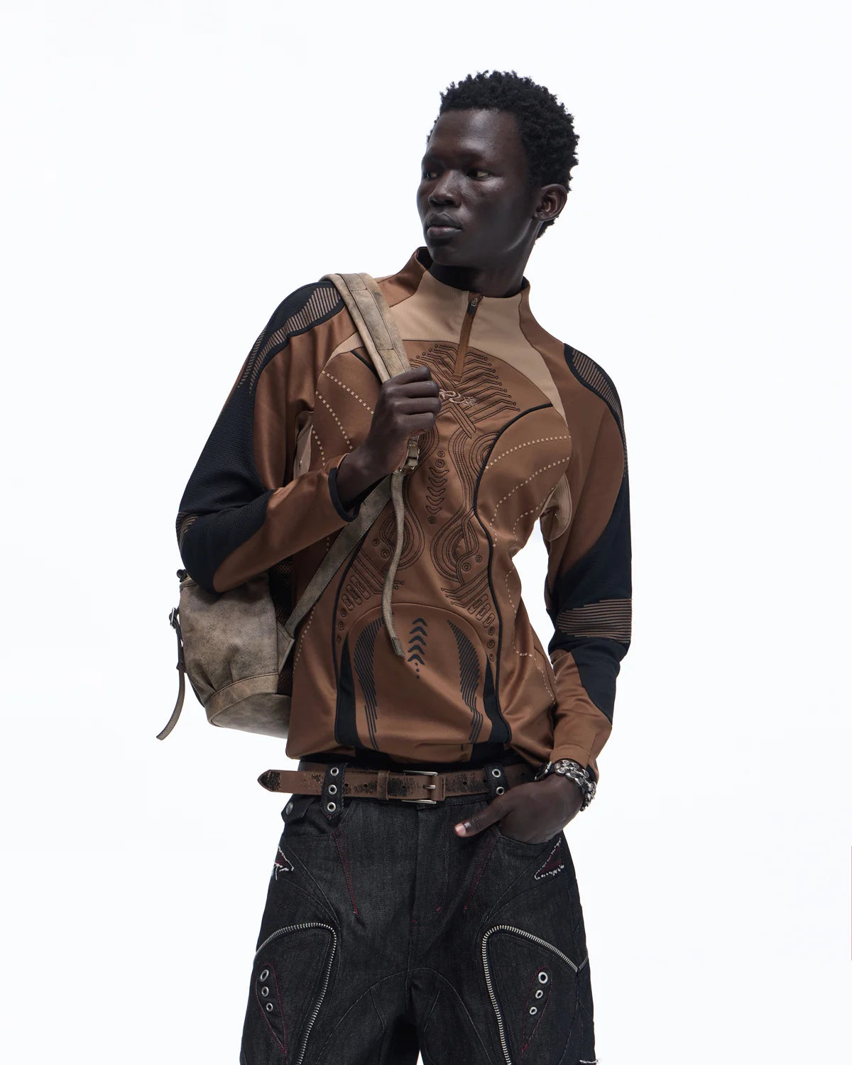 Personsoul Geometric Curve Mock Neck Top