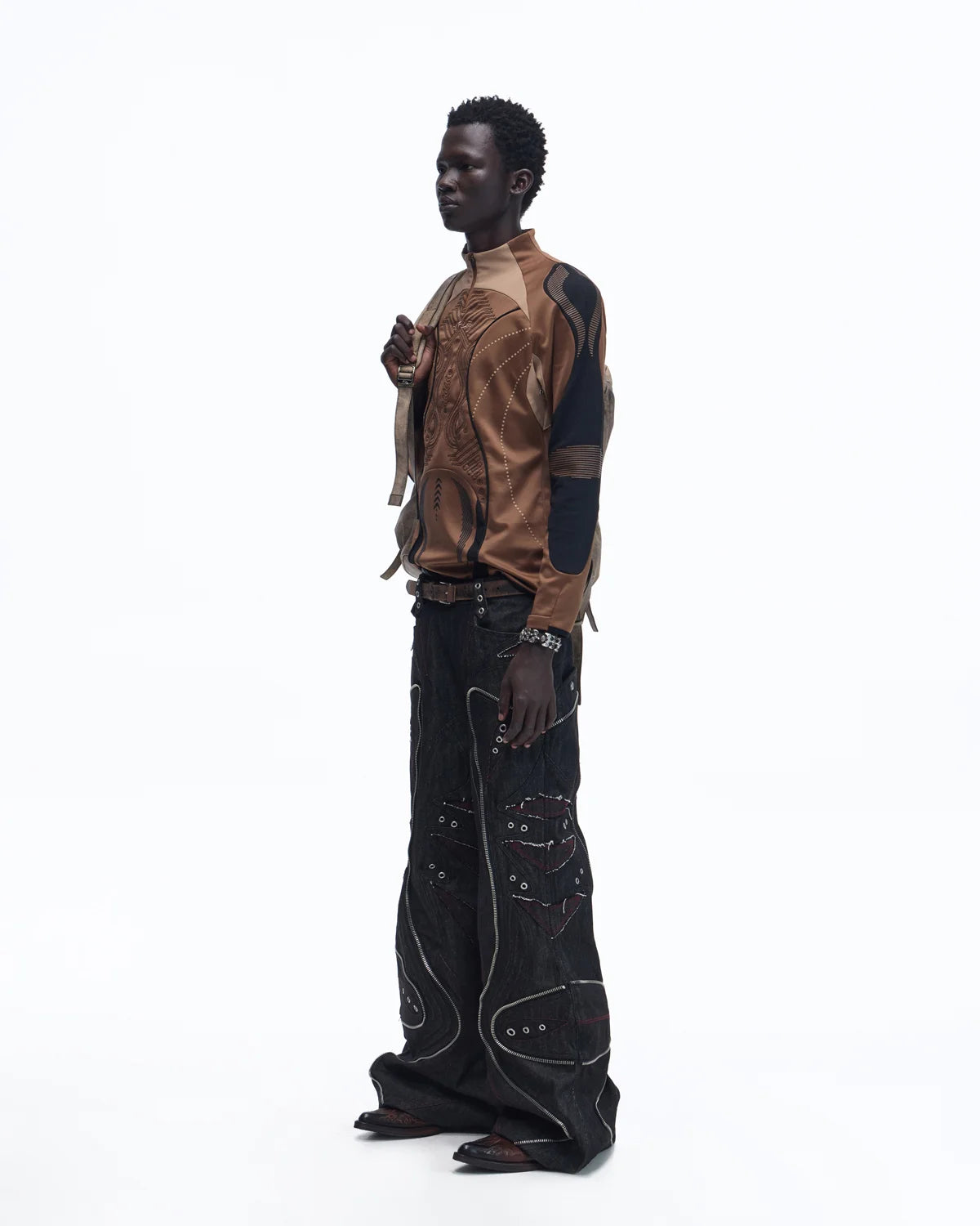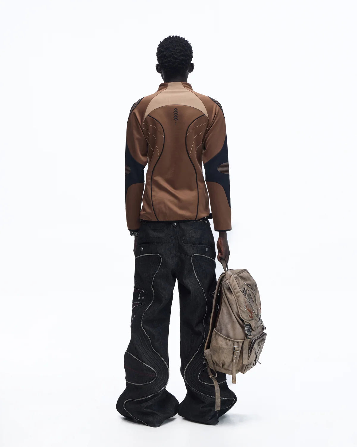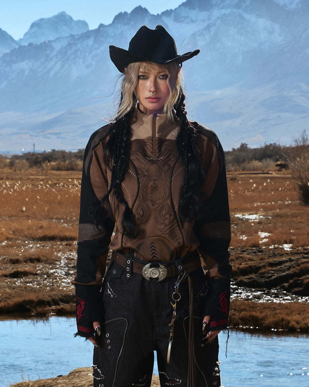 Personsoul Geometric Curve Mock Neck Top