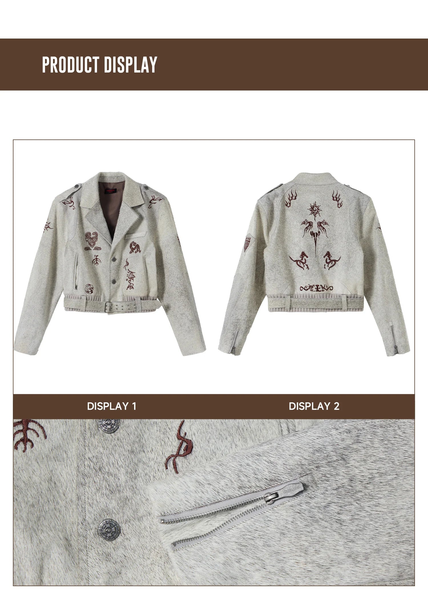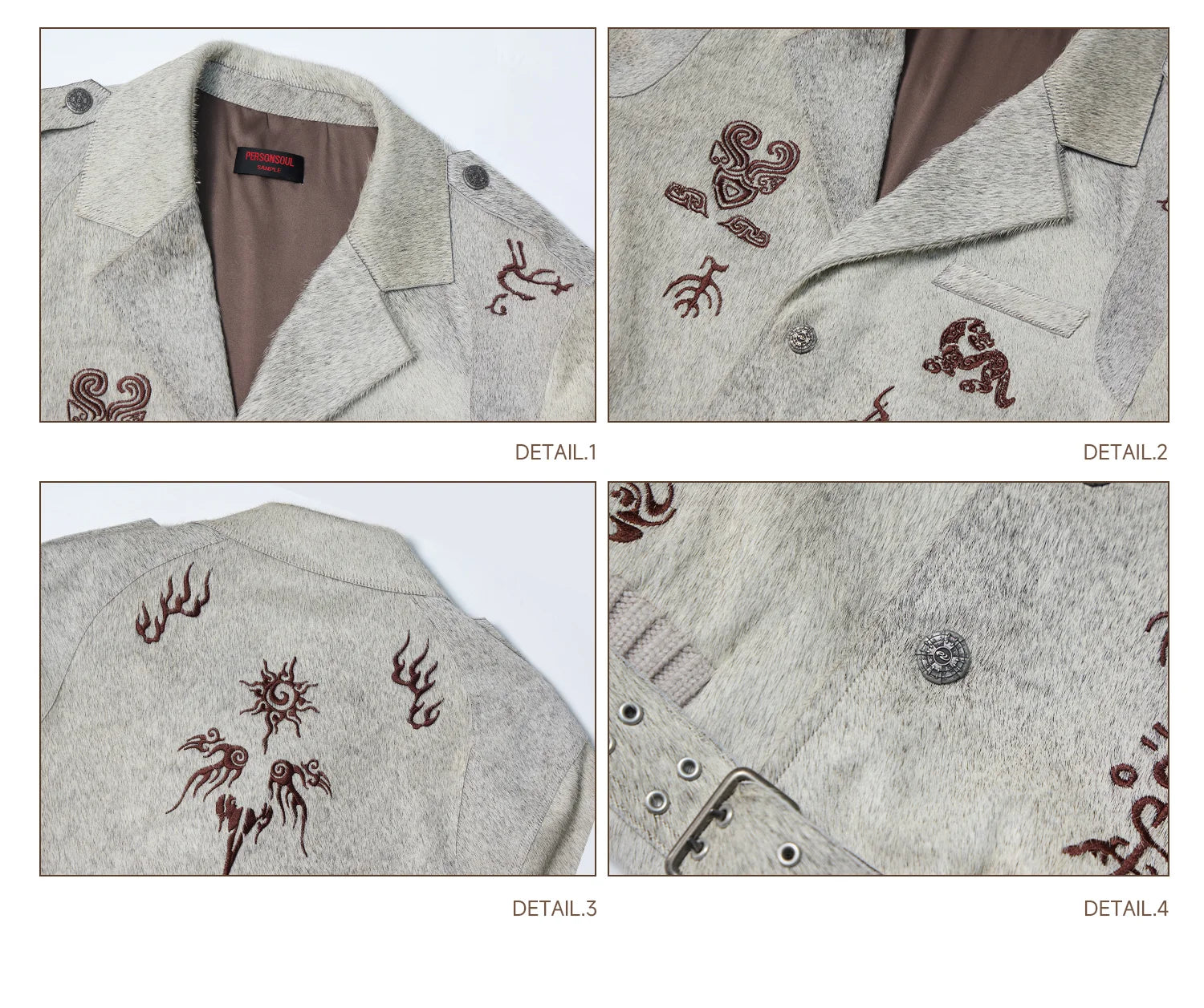 Personsoul Horse-Embroidered Leather Notch Collar Blazer(Limited 100 pieces)