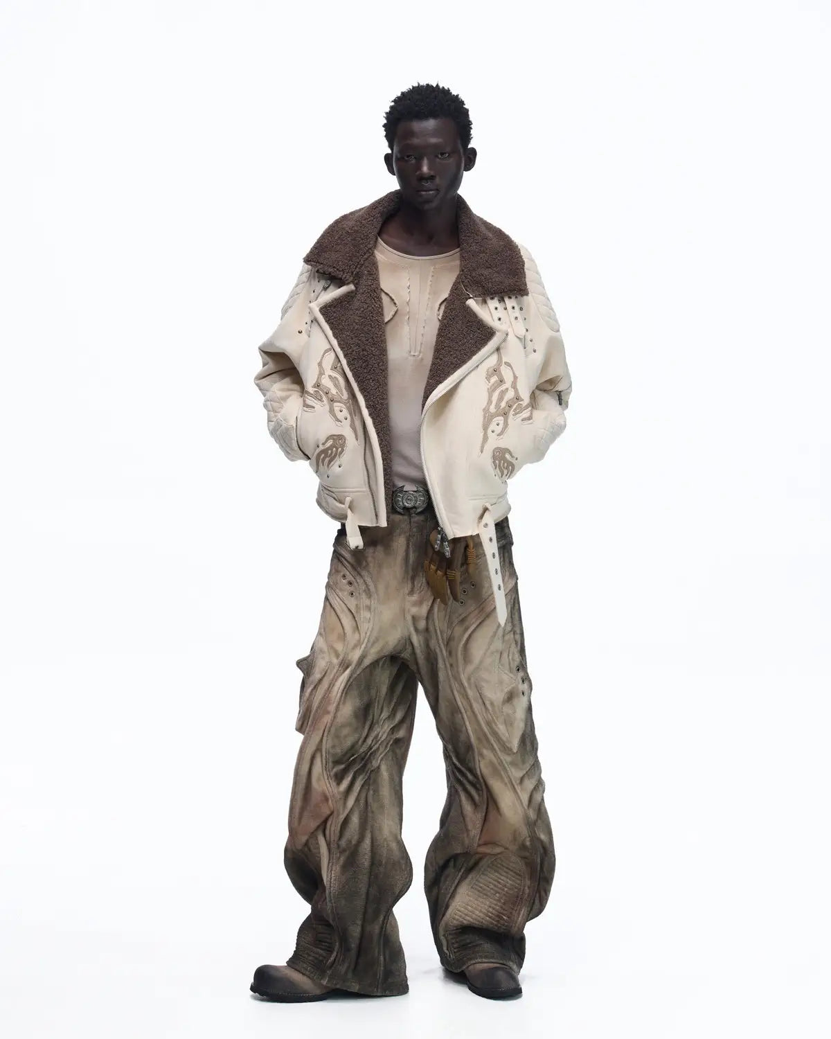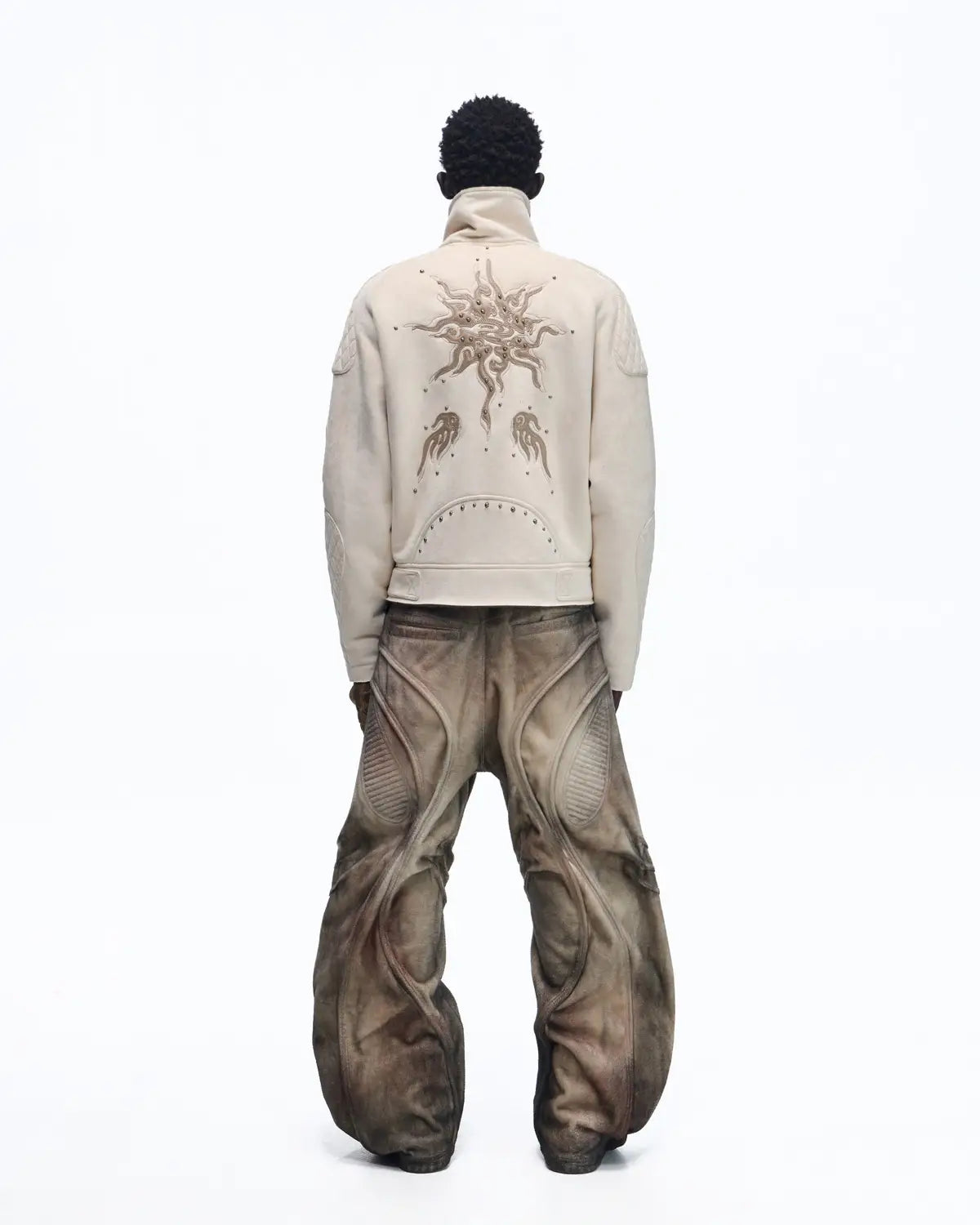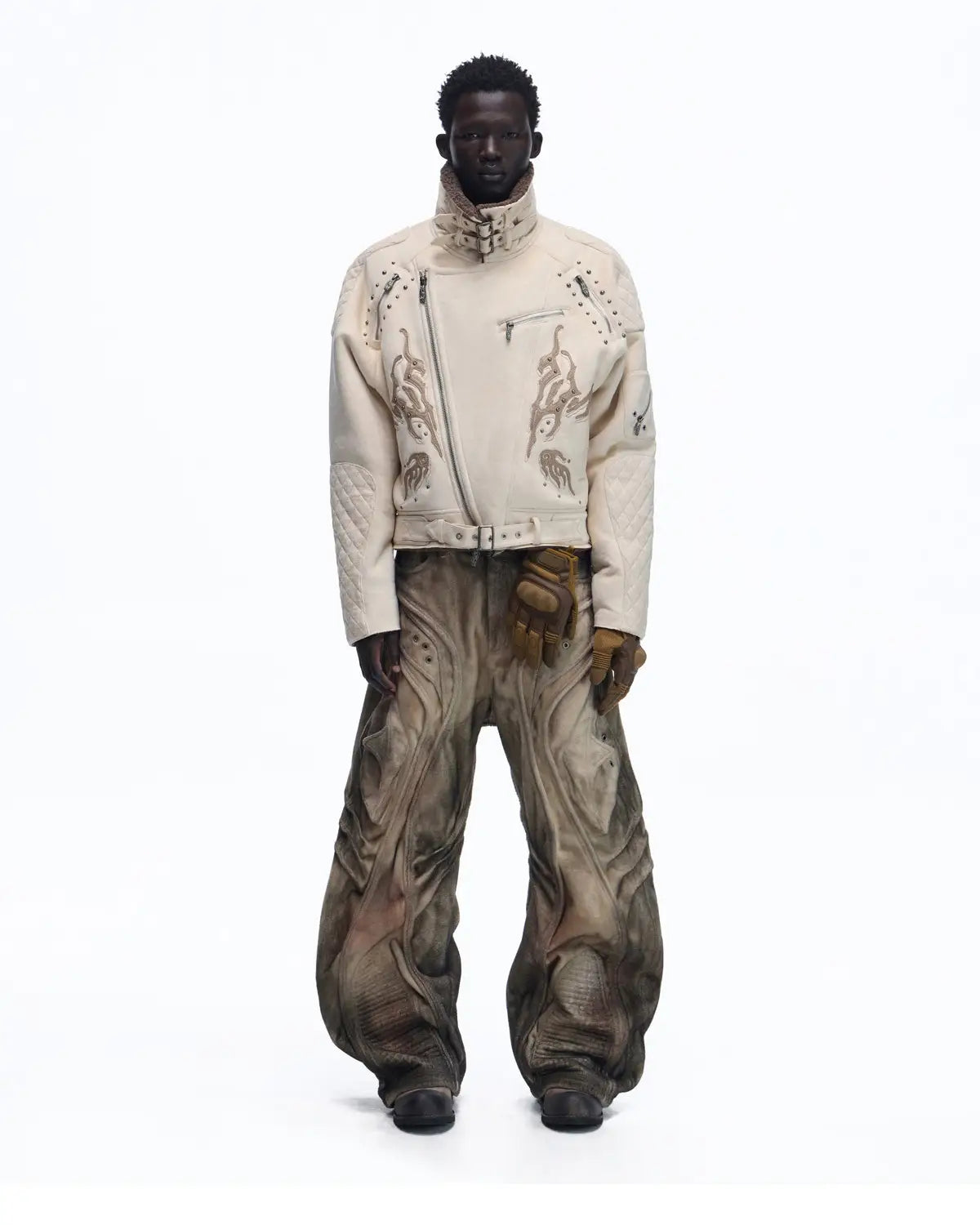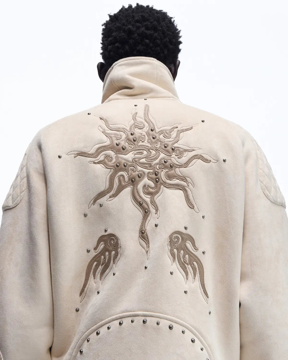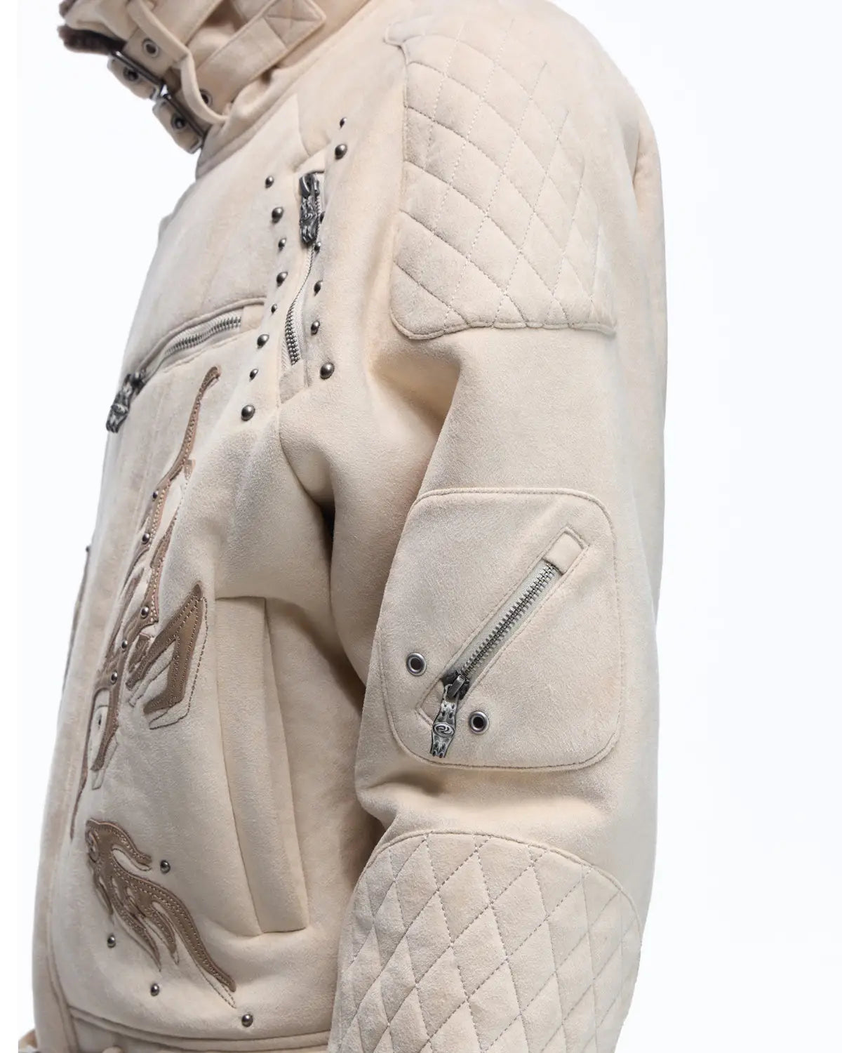 Personsoul Lightning Totem Stand Collar Jacket In White