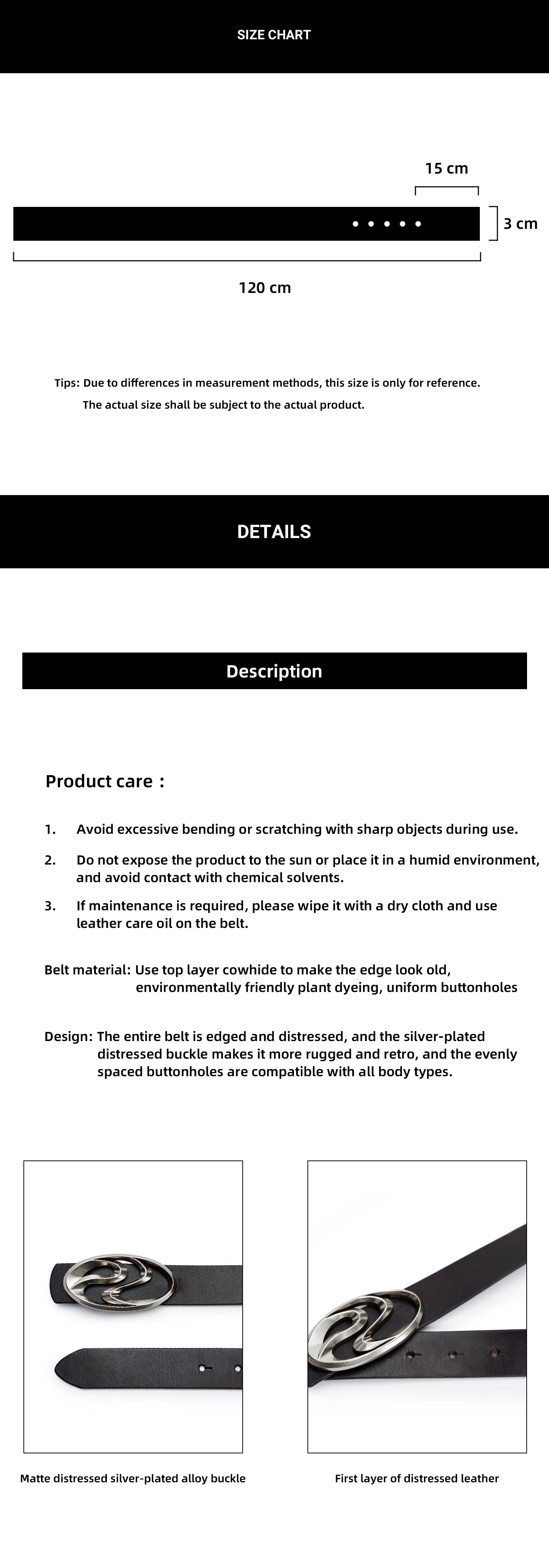 Product Info & Size Chart Details