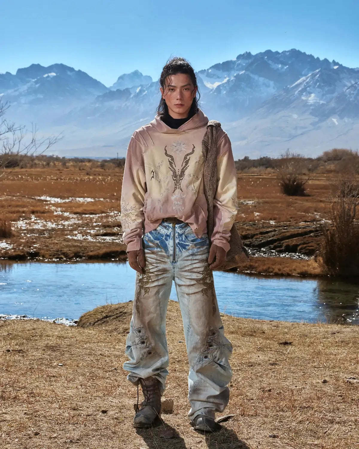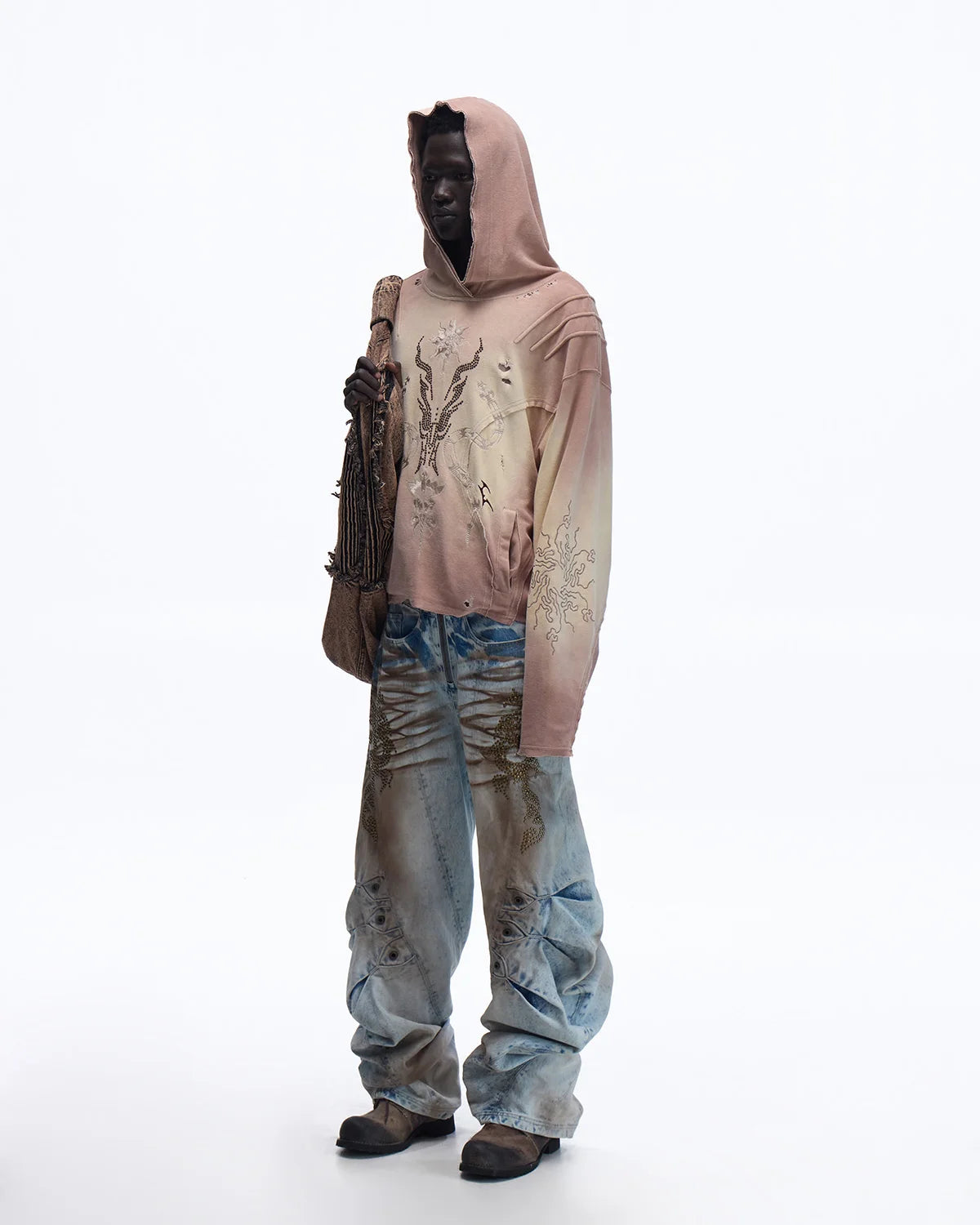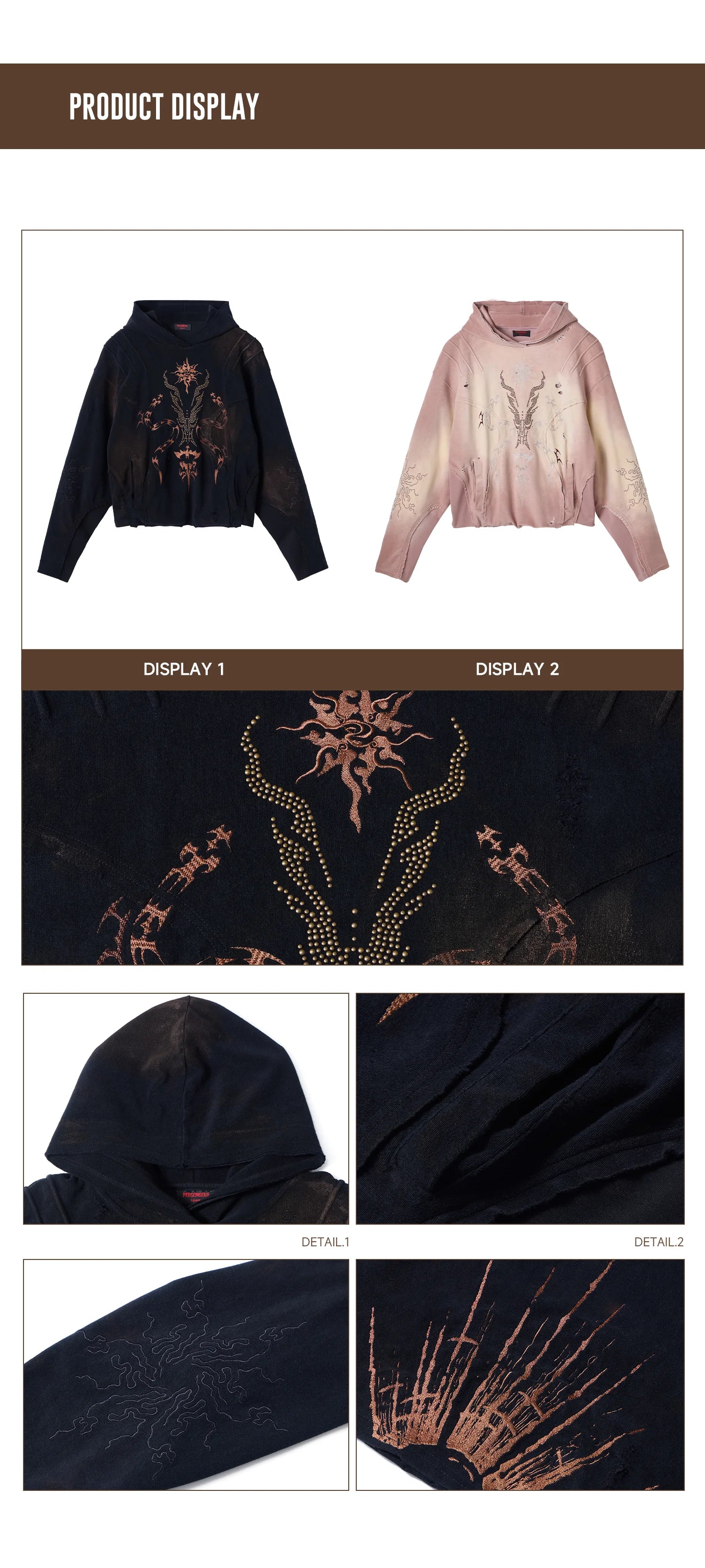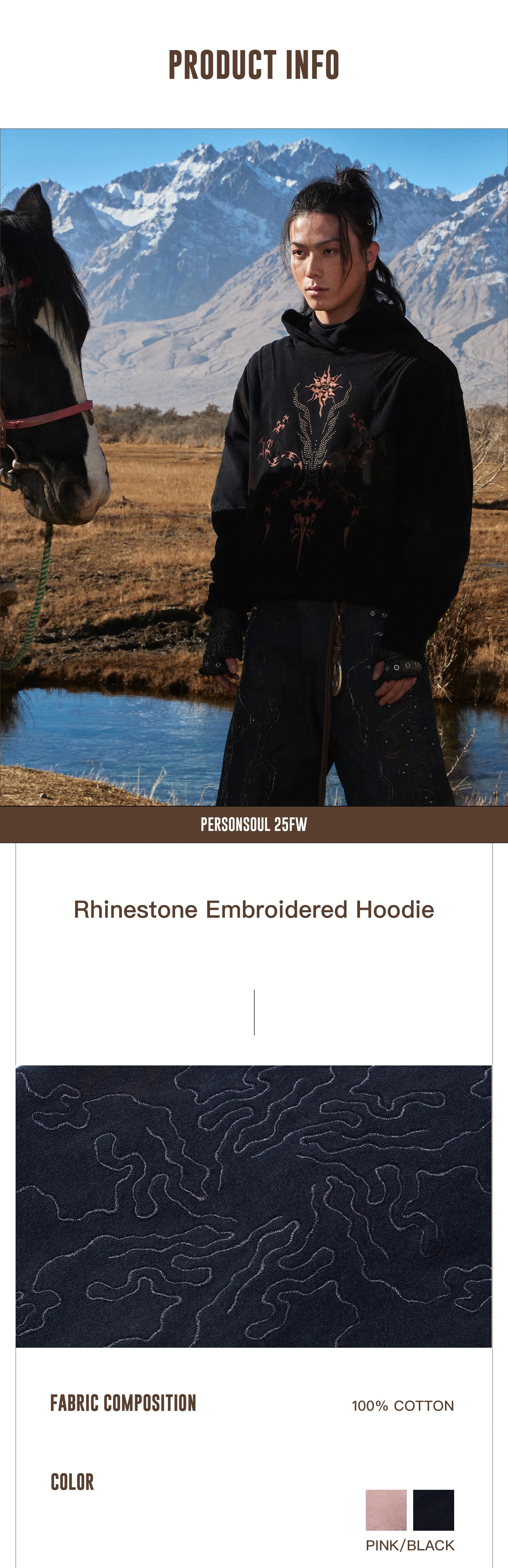 Personsoul Rhinestone Embroidered Hoodie