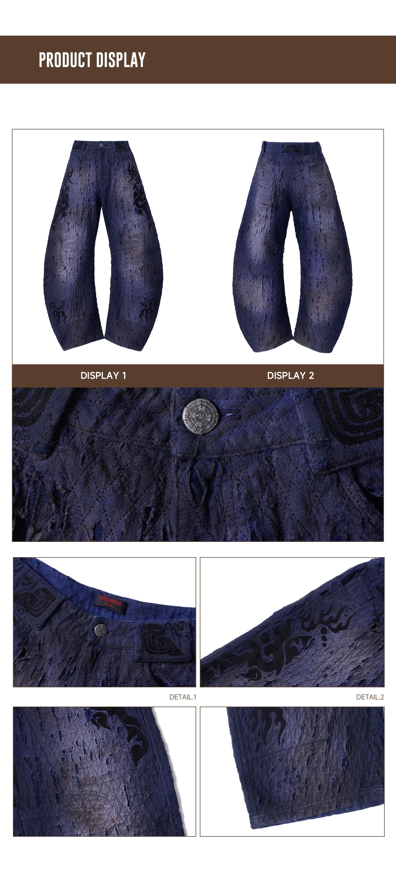 Personsoul Ripped Double-Layer Curved Jeans