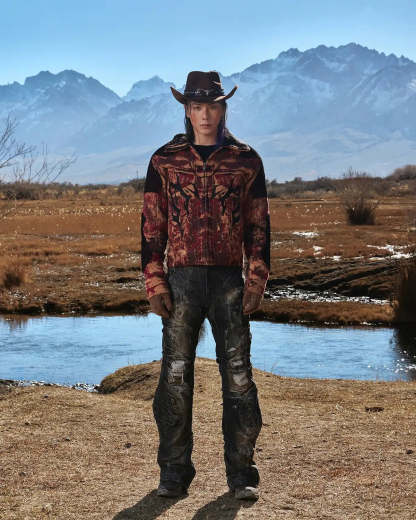 Personsoul Snake-Pattern Totem Slim-Fit Jeans