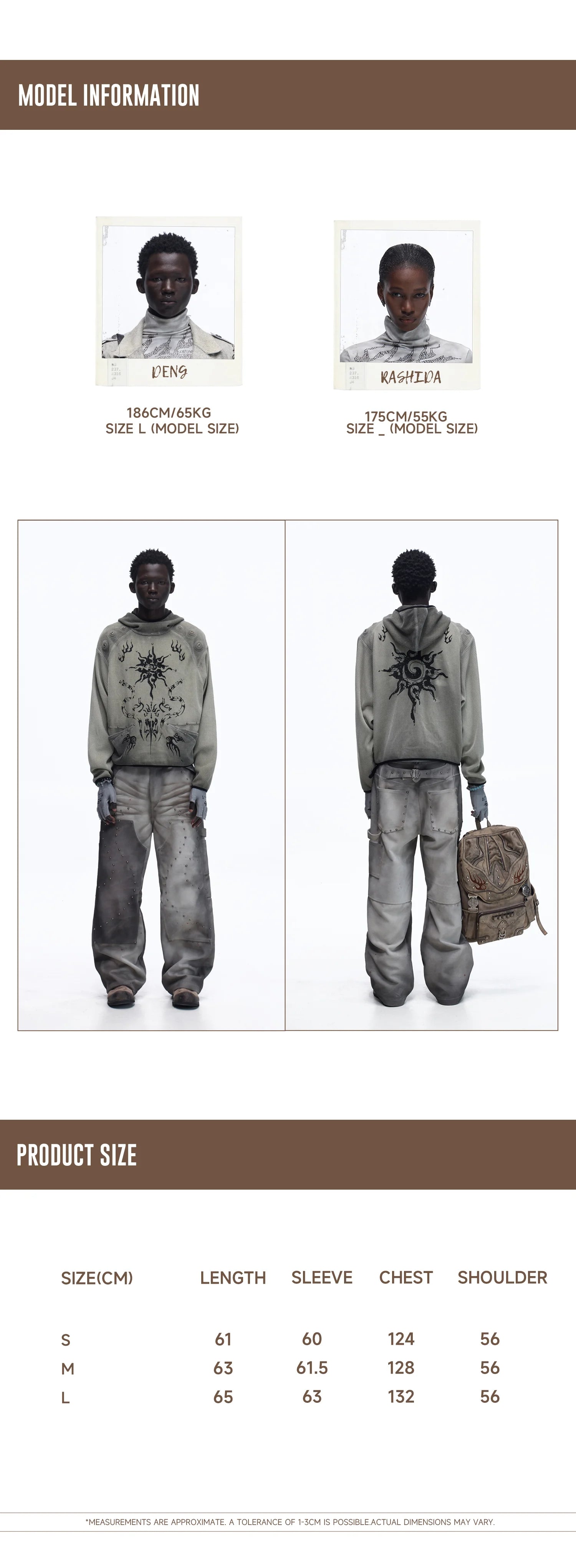 Personsoul Solar Totem Textured Plaid Hooded Sweatshirt