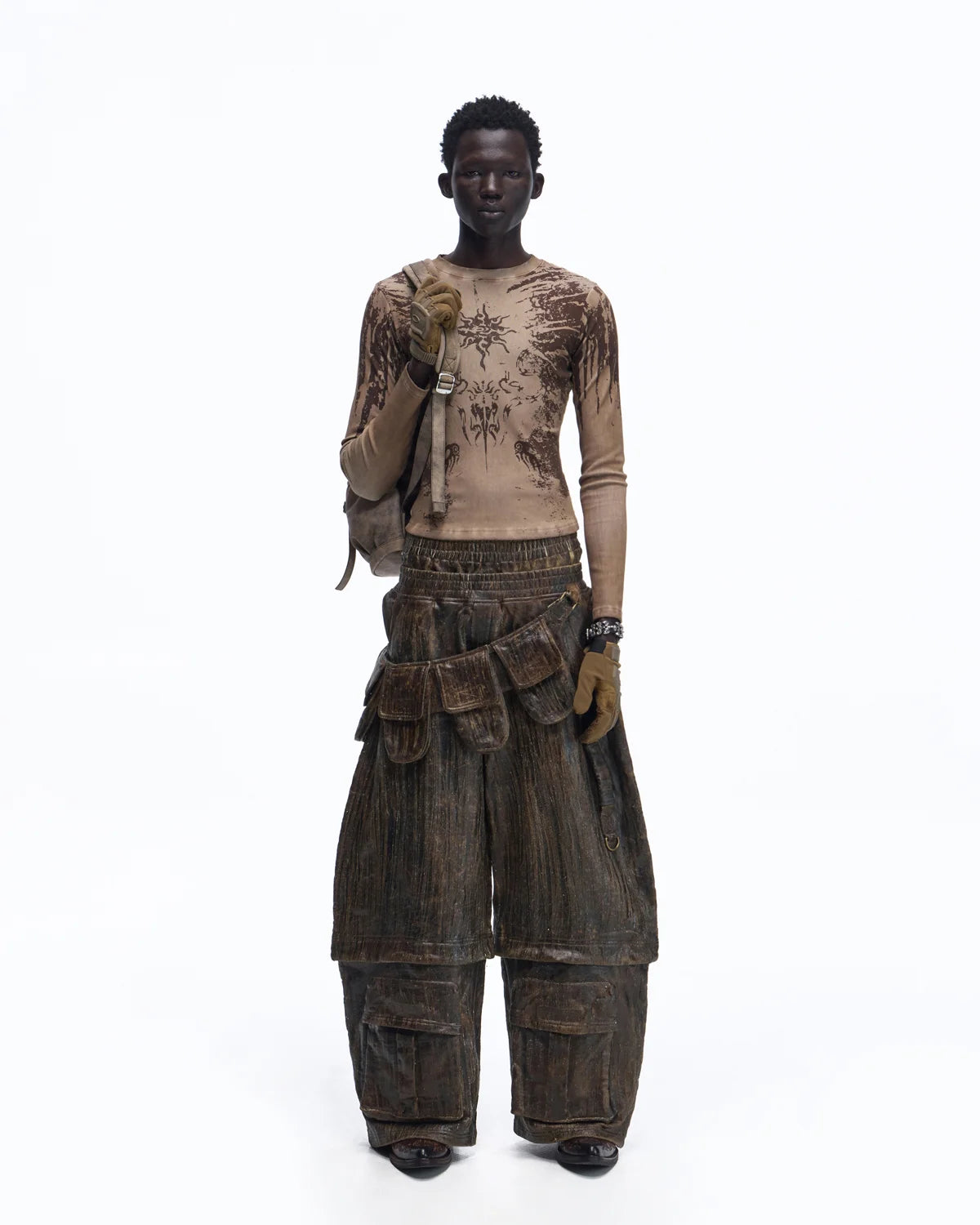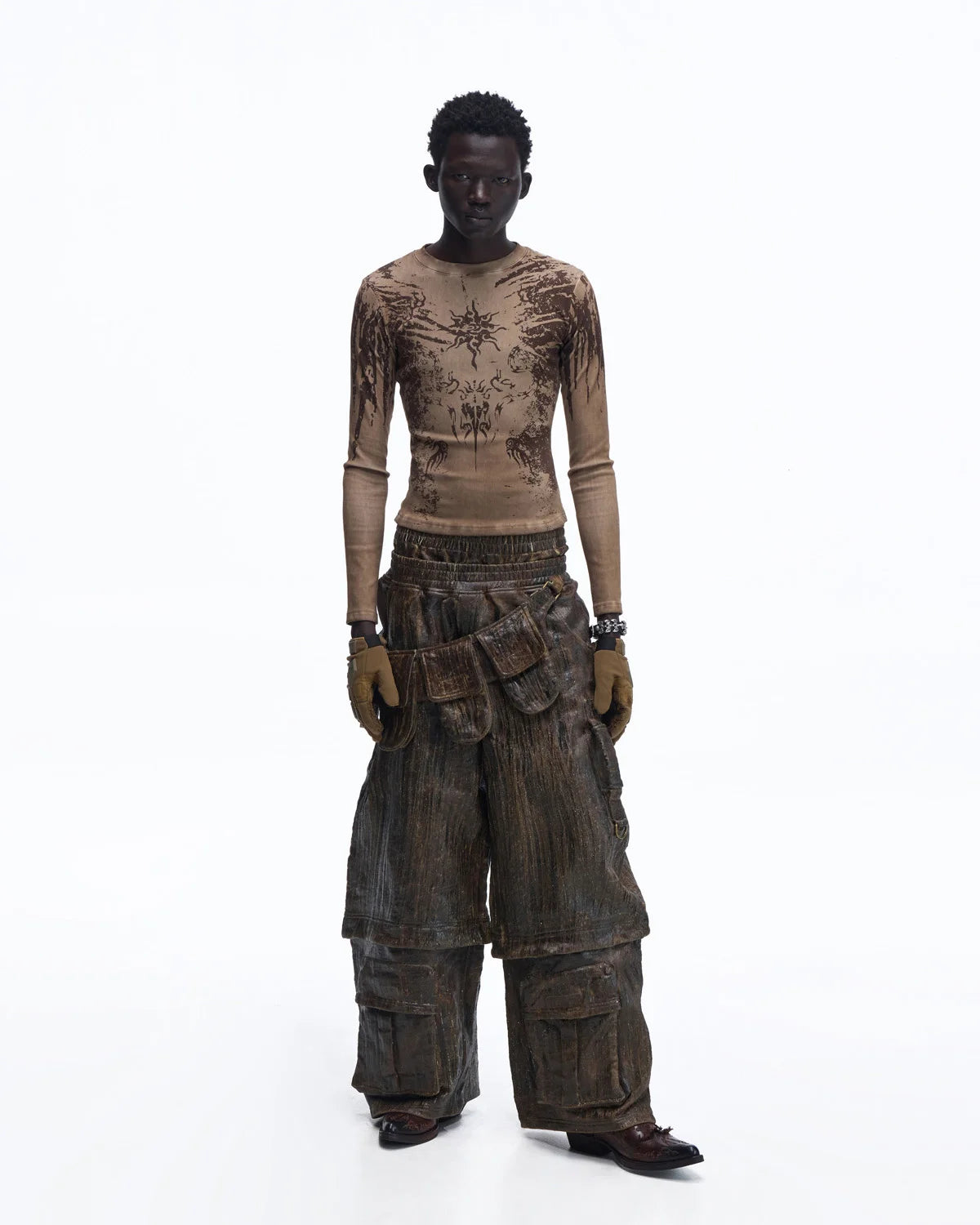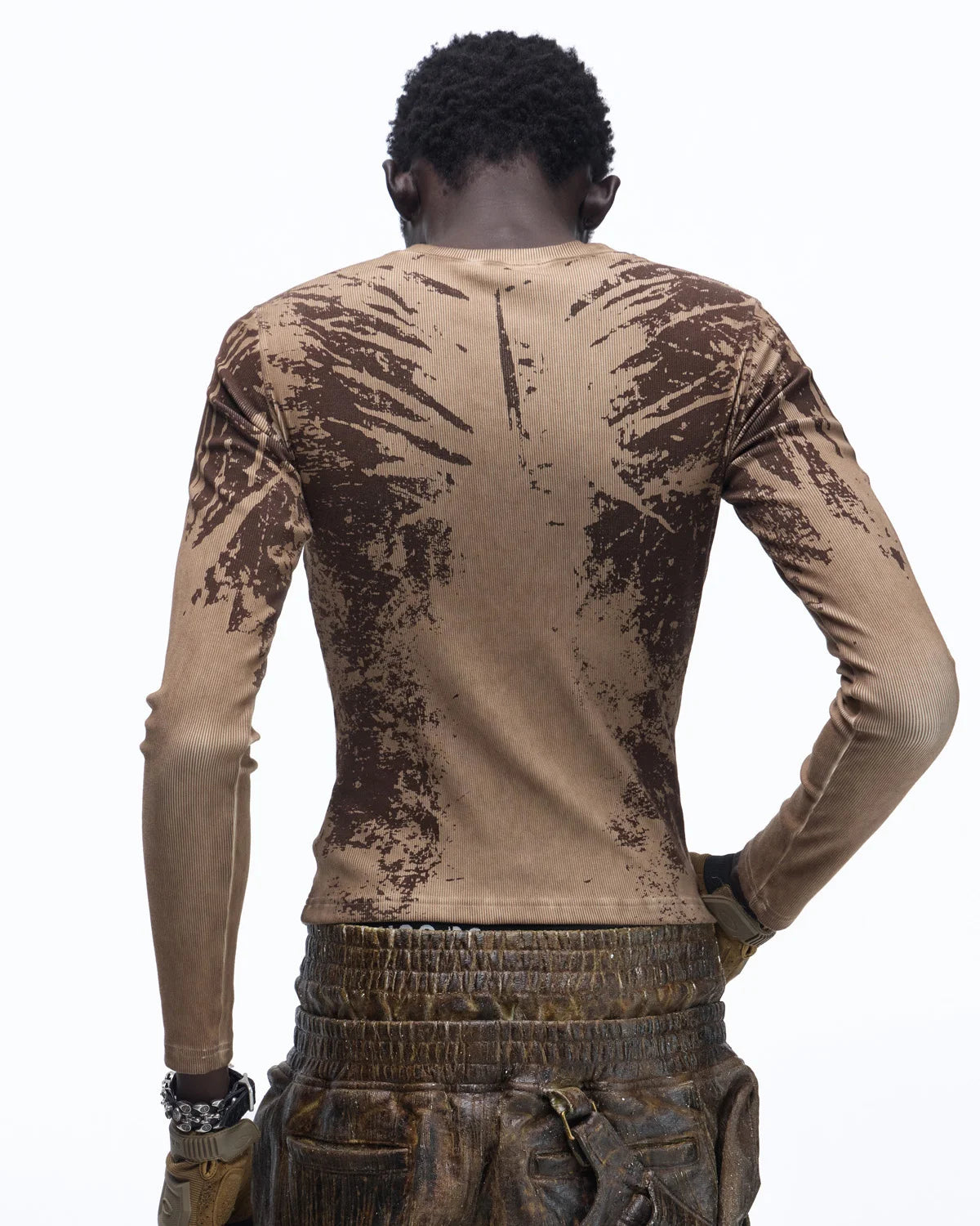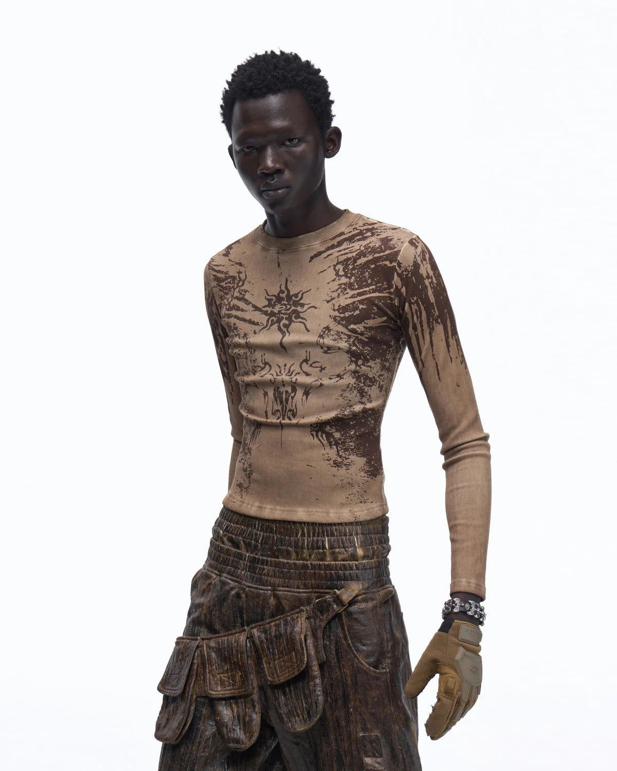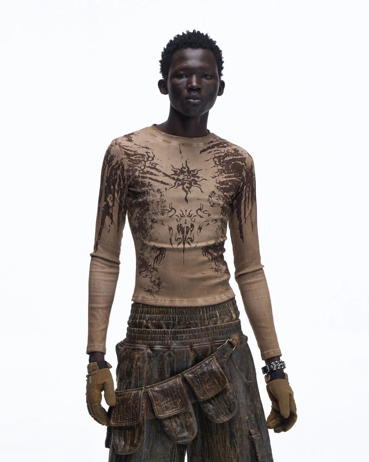 Personsoul Sun Totem Slim Long Sleeve Tee In Brown