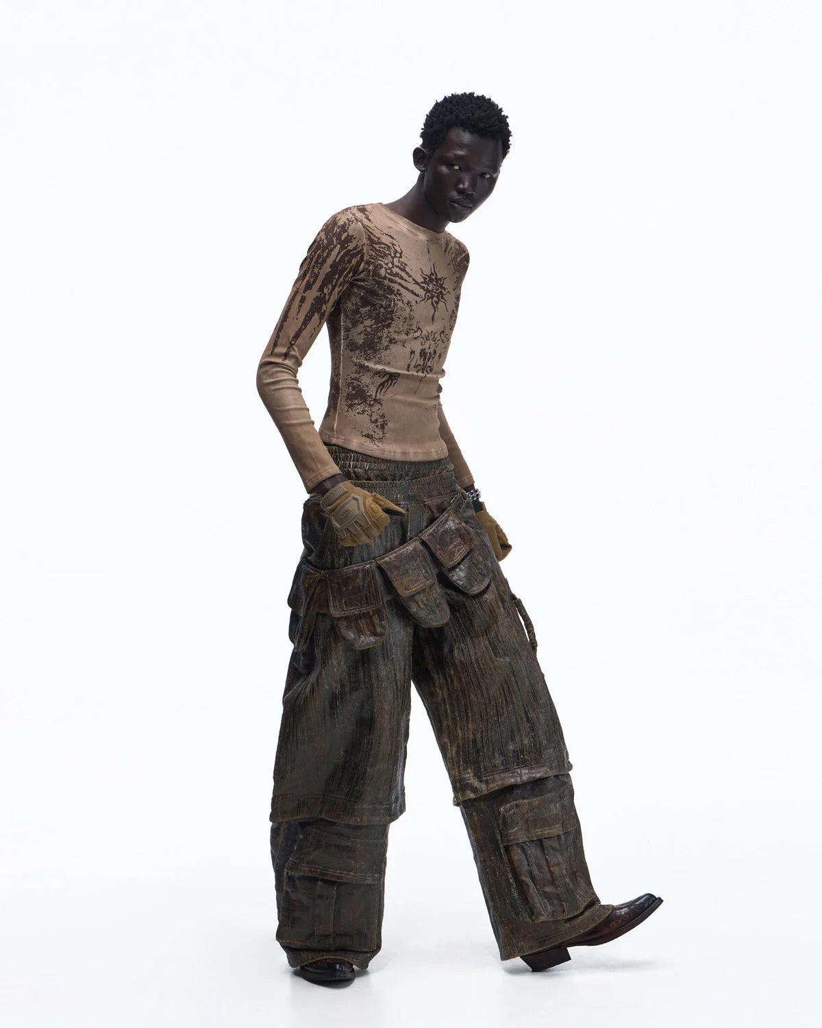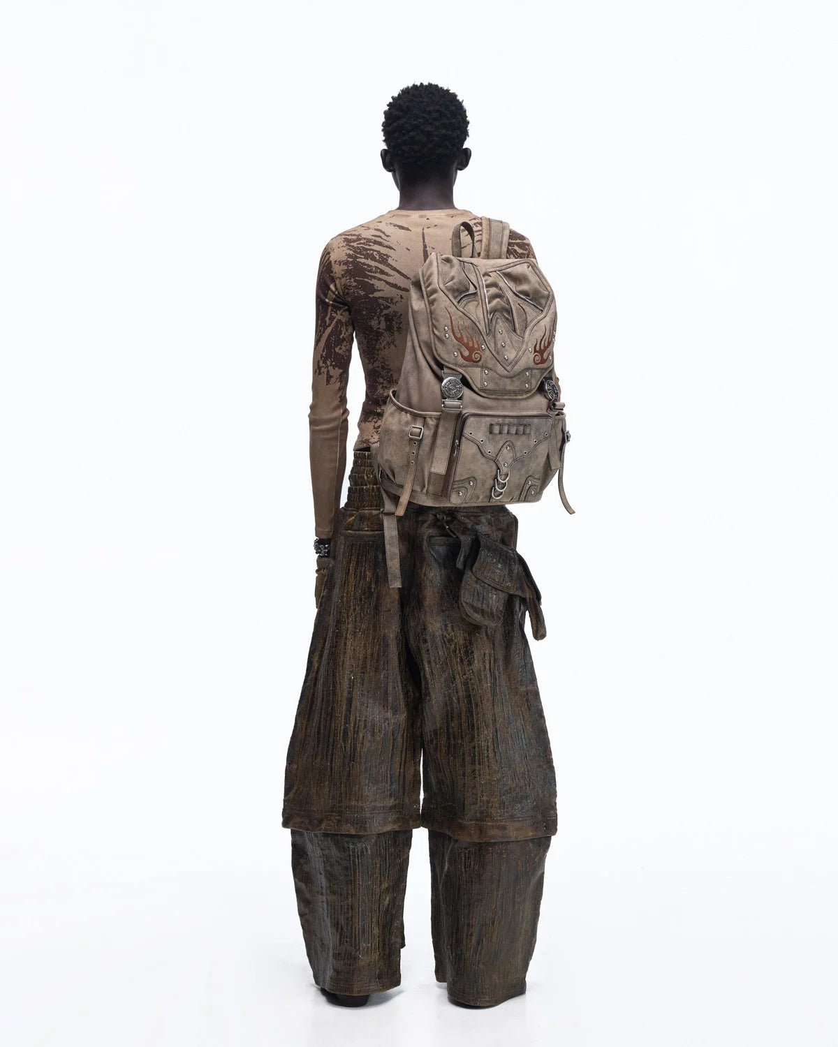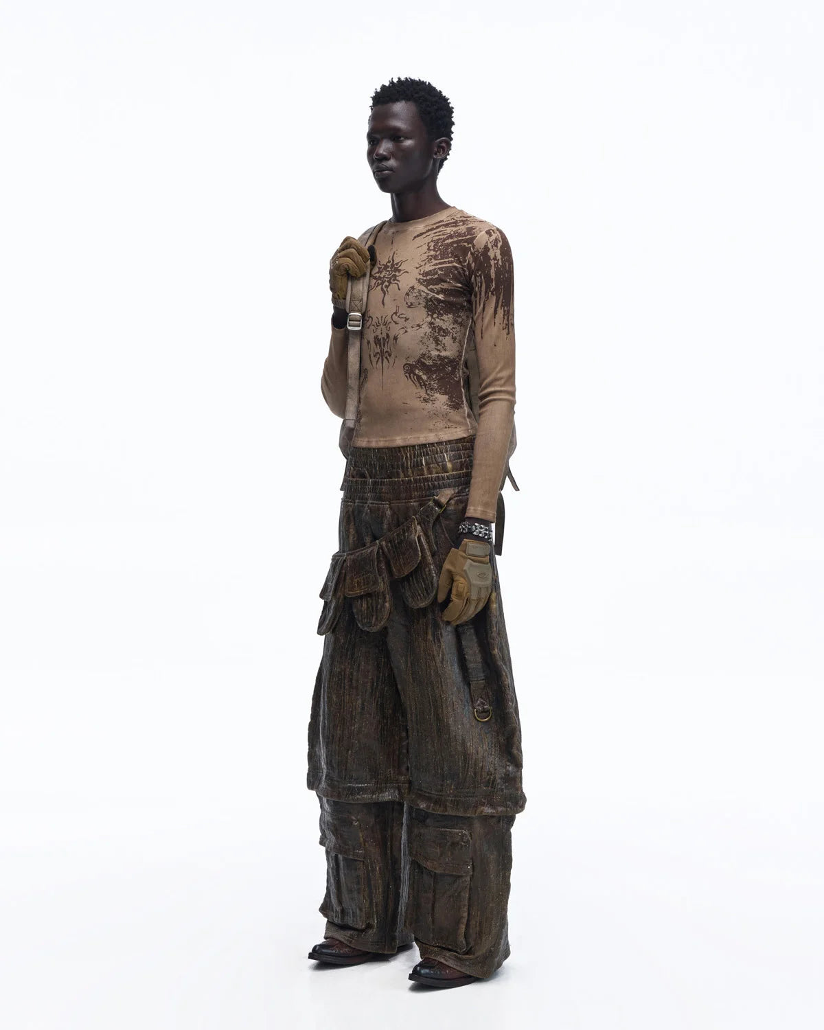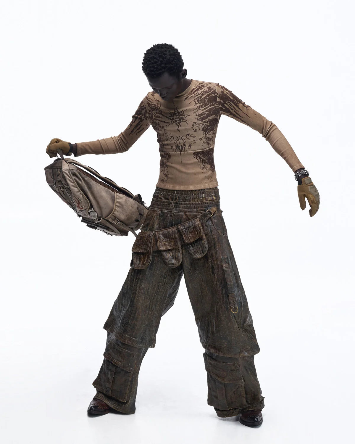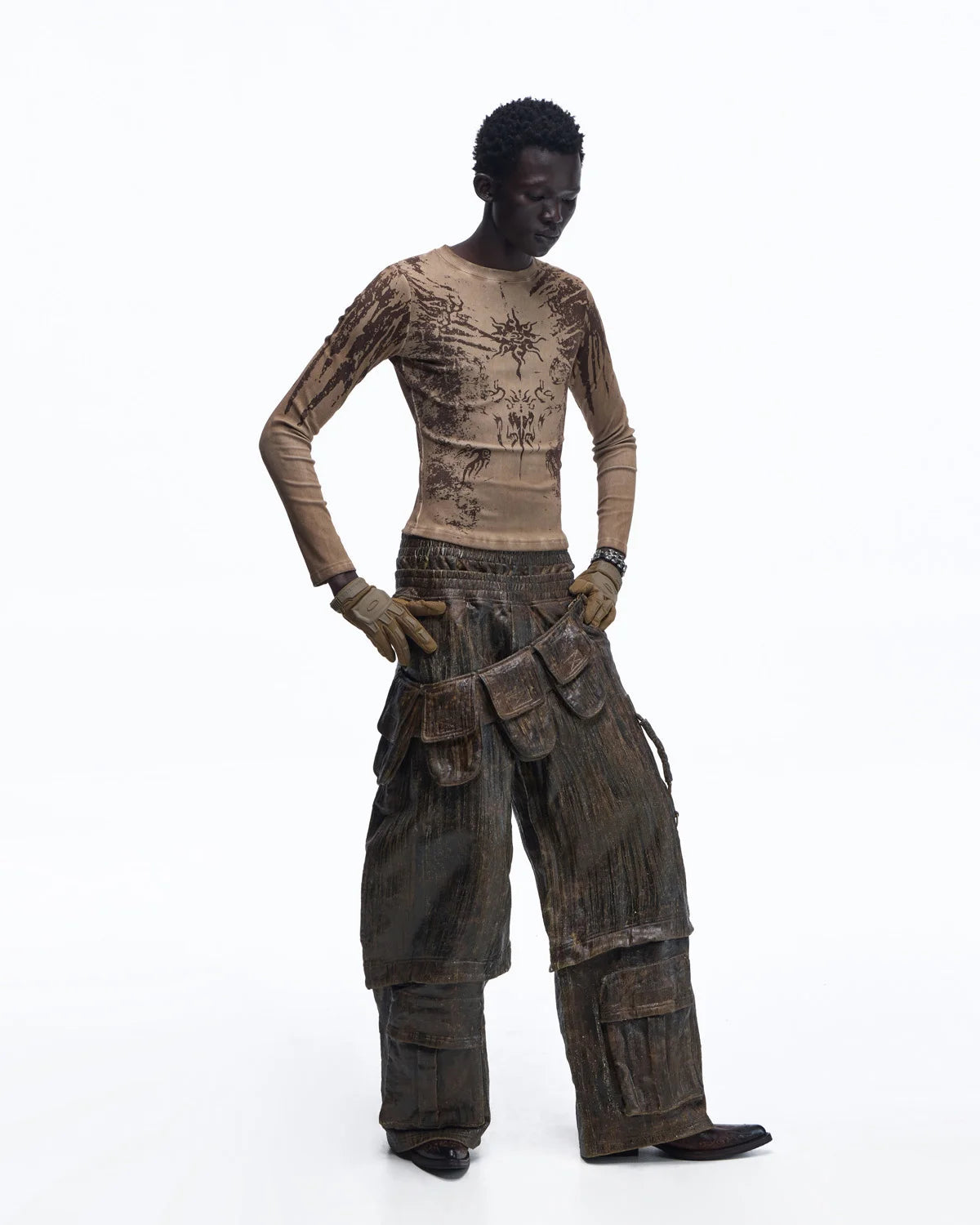 Personsoul Sun Totem Slim Long Sleeve Tee In Brown