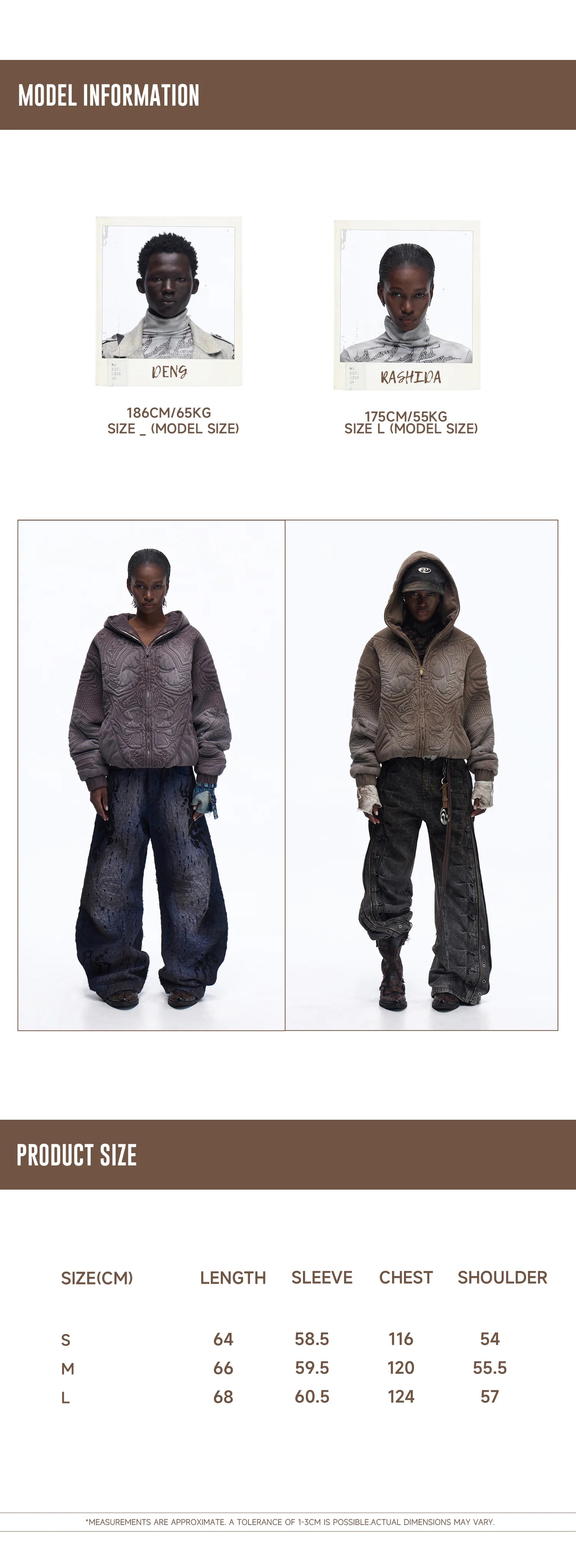 Personsoul Textured Full-Zip Hoodie with Chinese Motif Embroidery