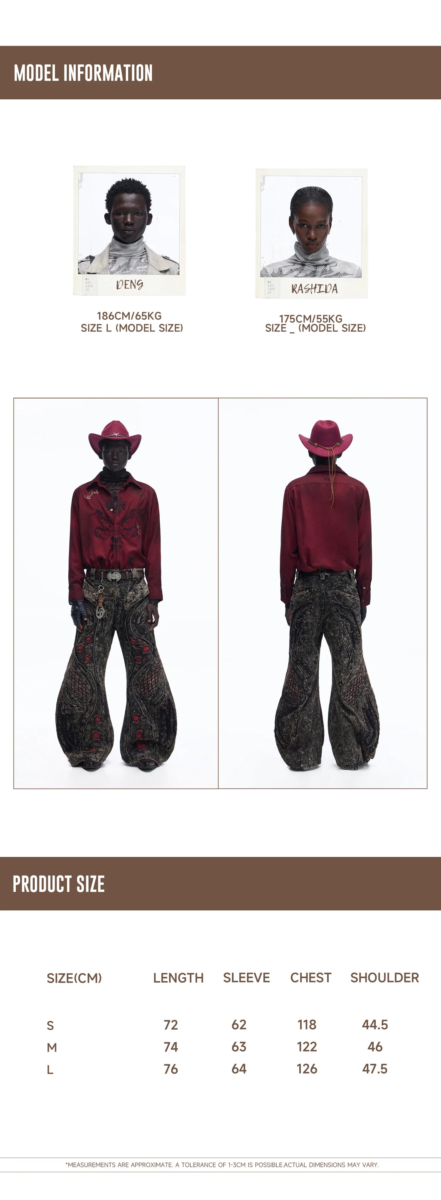 Personsoul Vintage Wine Red Shirt with Totem Print