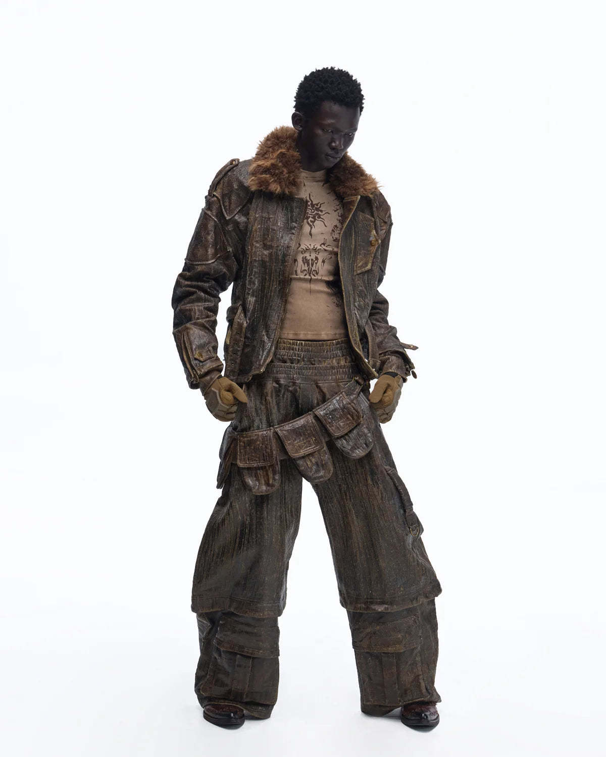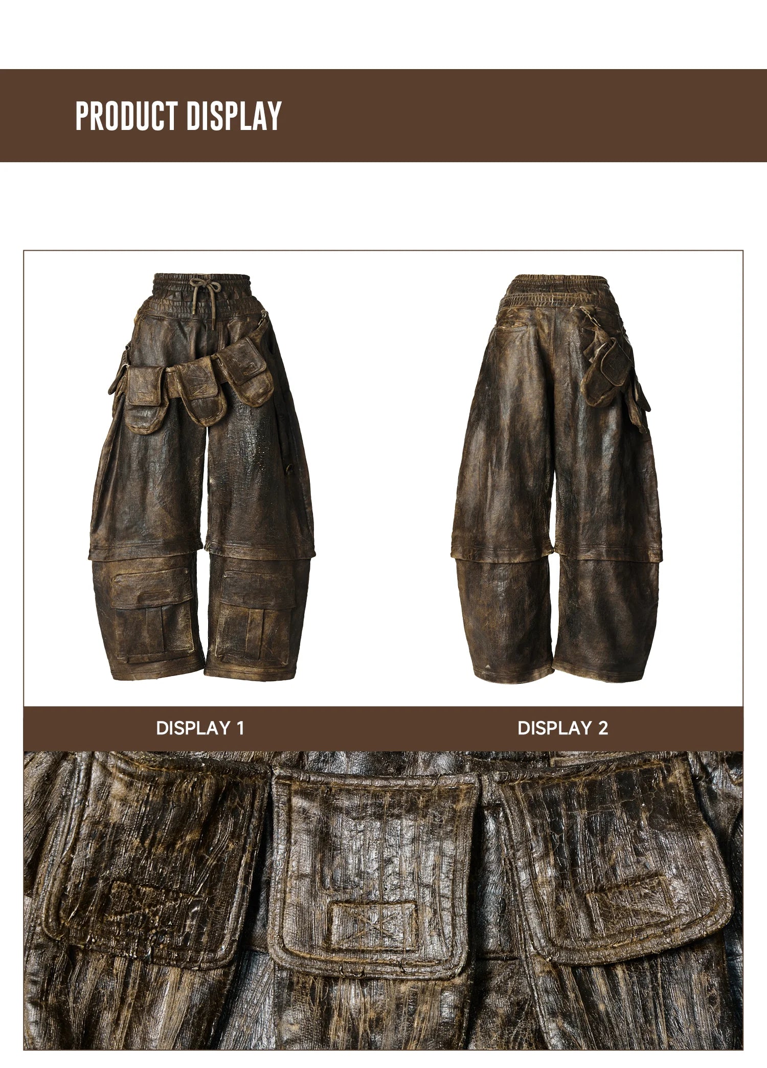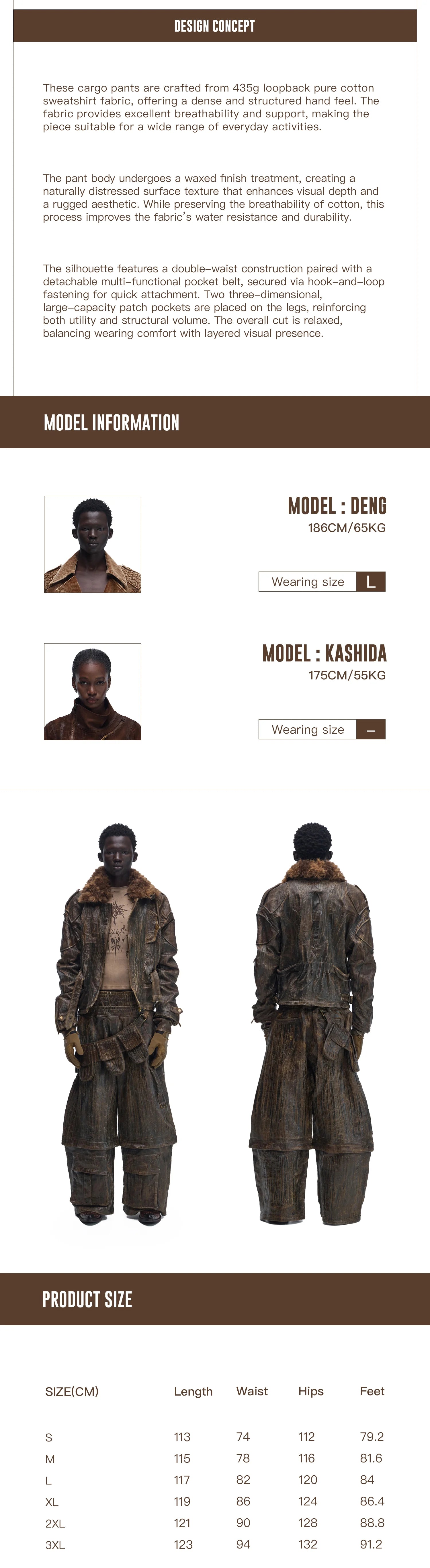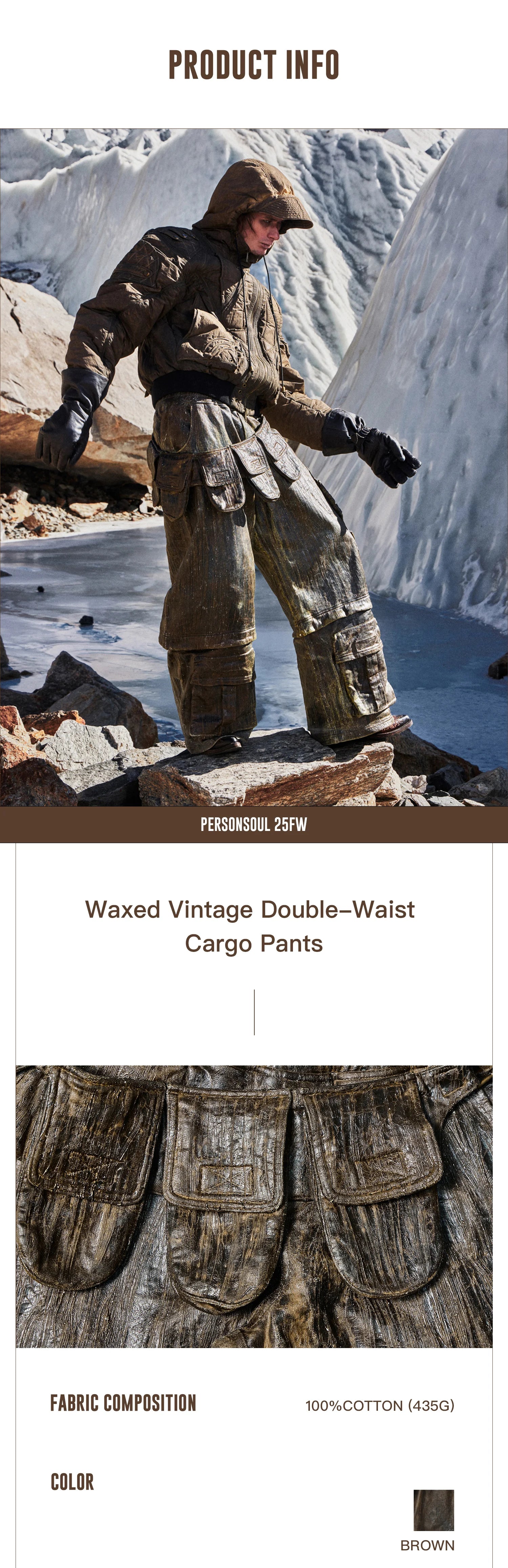 Personsoul Waxed Vintage Double-Waist Cargo Pants(Limited 100 pieces)