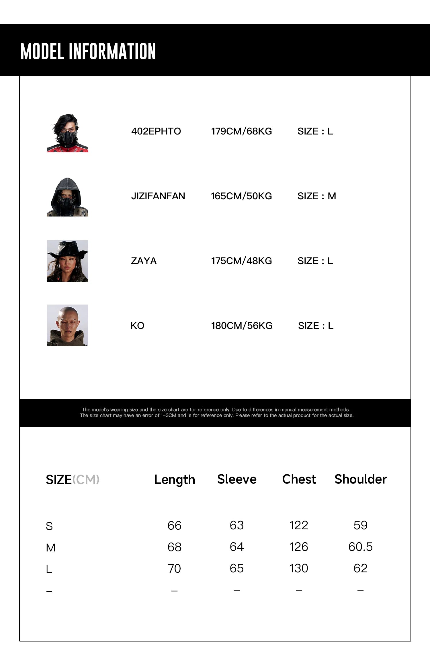 Product Info & Size Chart Details