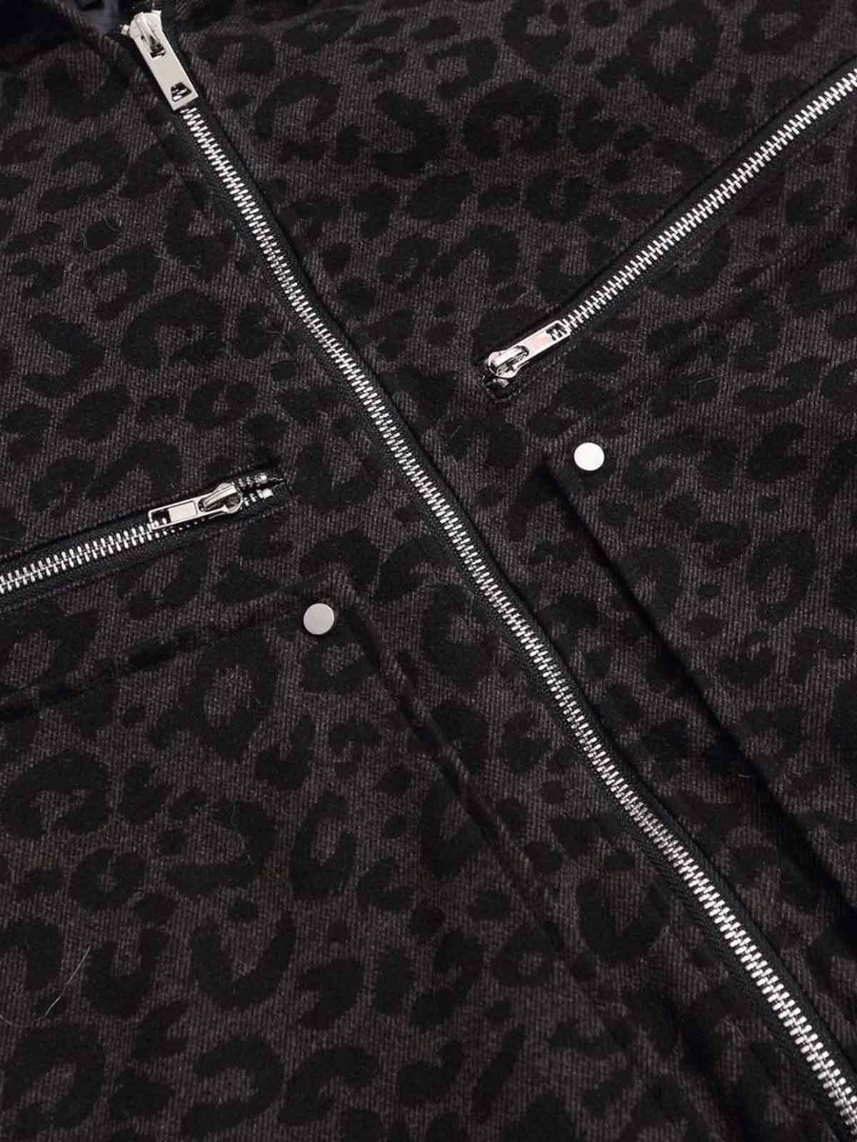 • Design Elements: Leopard print pattern, faux fur trimmed hood, front zipper closure