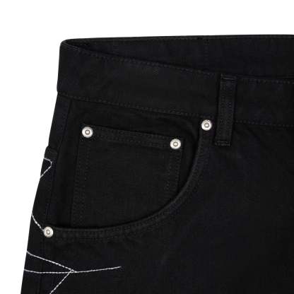 14,5oz raw denim / 100% cotton / embroidery on front and back / embossed printed leather patch / wash inside out / fits true to size
