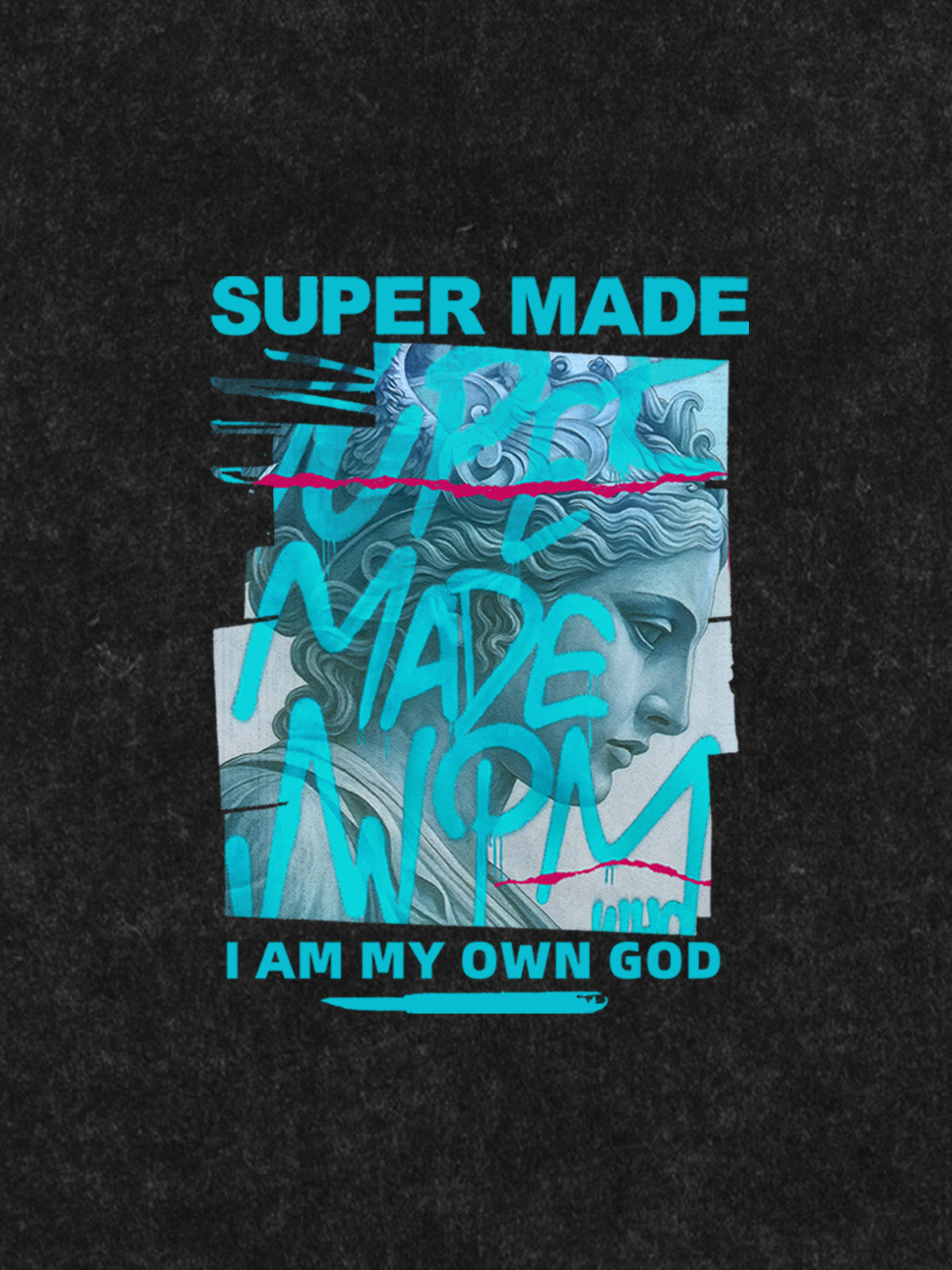 SUPERMADE Blue Art Graffiti Pattern T-Shirt