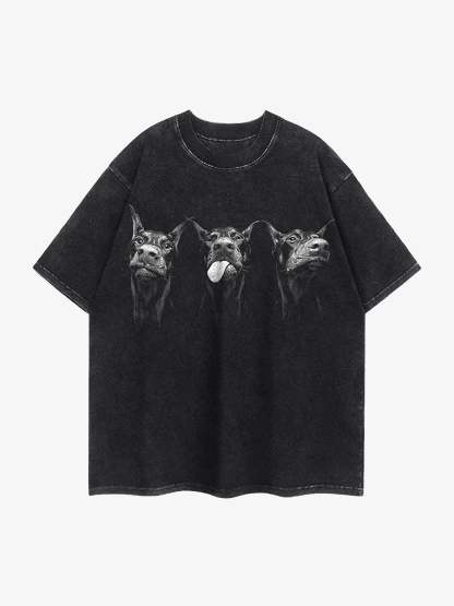 Thesupermade Doberman Print Washed Vintage T-shirt