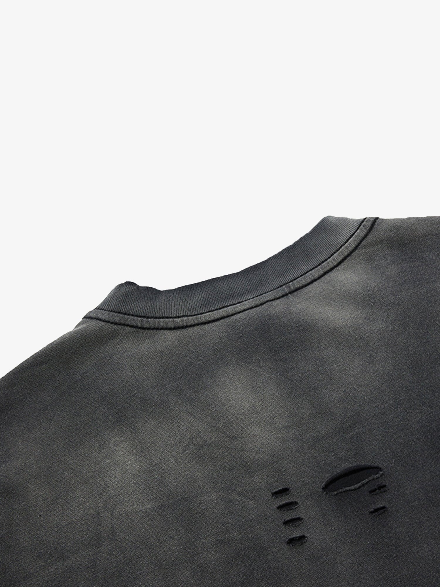 • Detail Features: Distressed Details, Drawstring Hem, Short Sleeves, Round Neck
