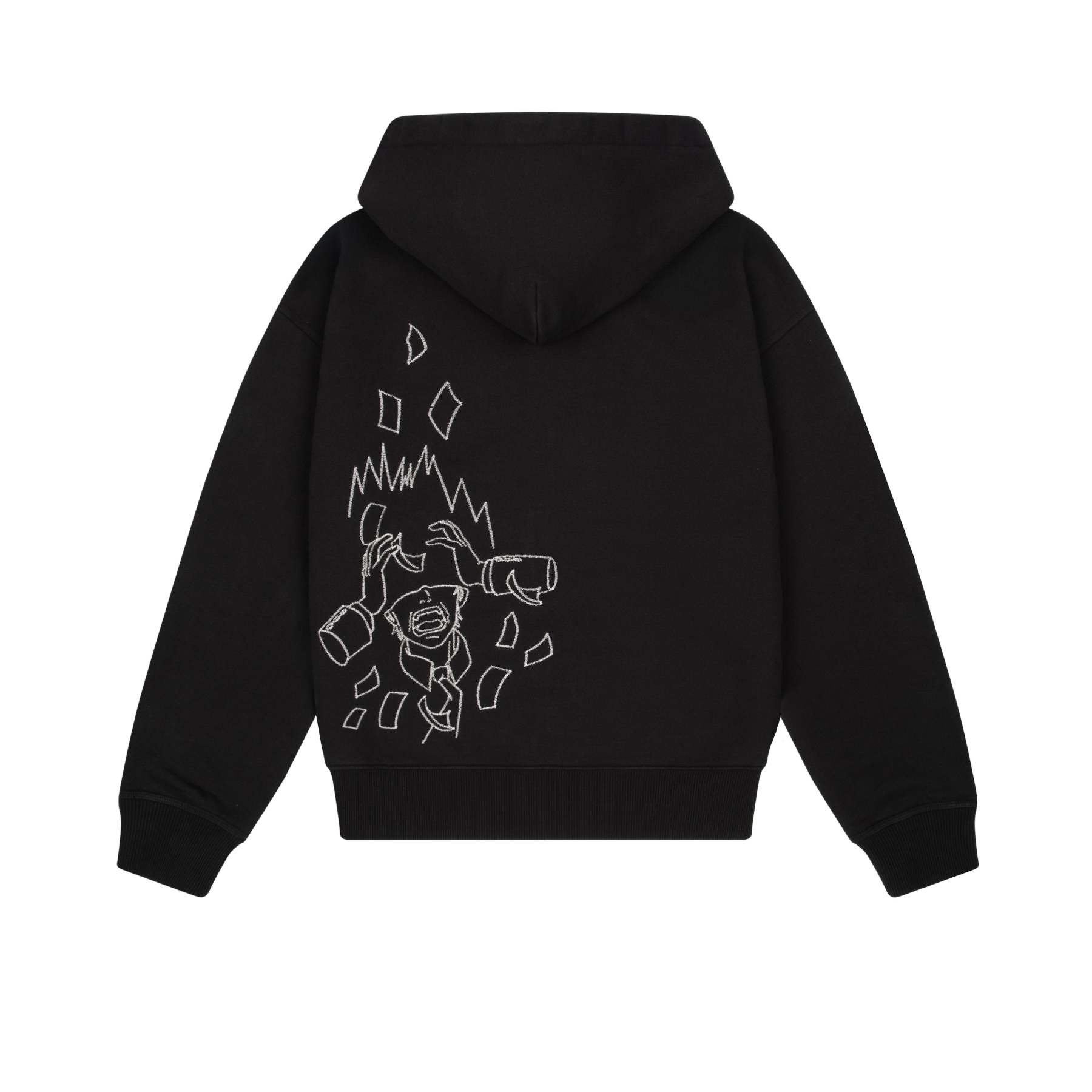 460gsm / 100% preshrunk cotton / embroidered tie patch from jersey fabric on front / embroidery on back / with double-slided YKK zipper / without cord / fits true to size