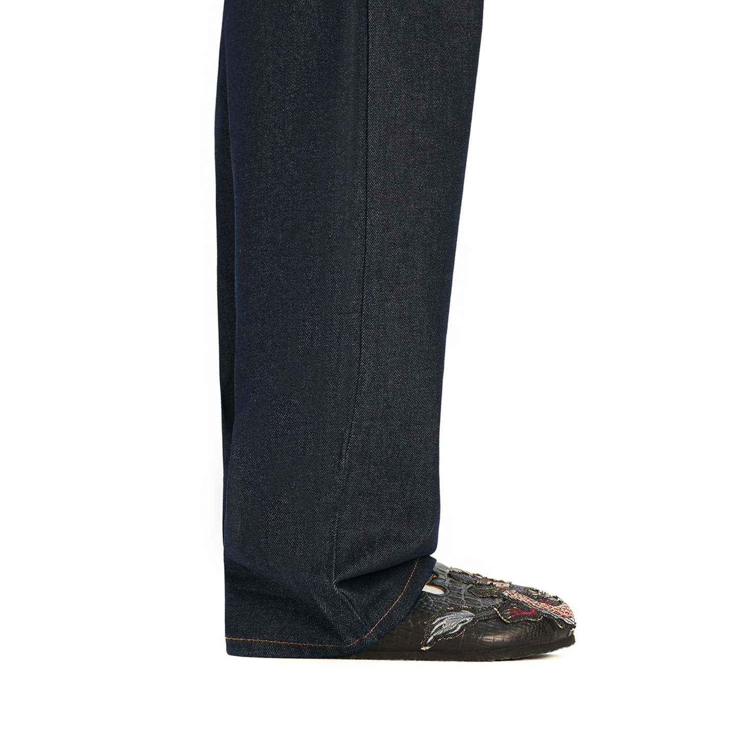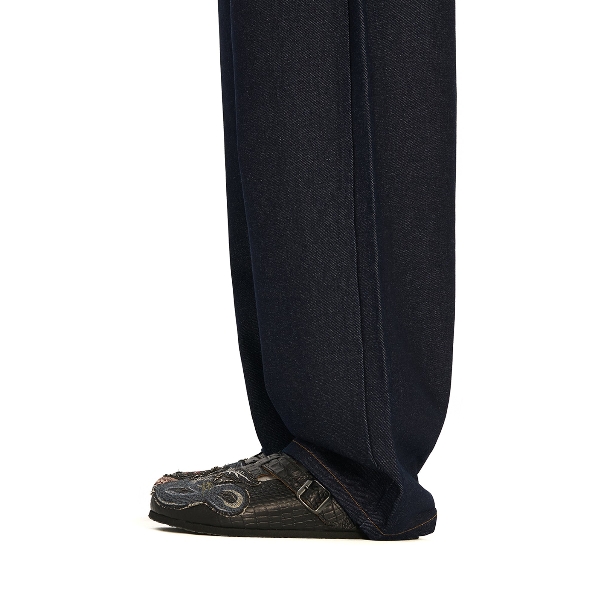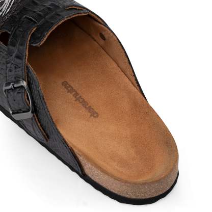 suede leather / leather inner-lining / cork footpad with eva outsole / croco printed leather with denim patched embroidery / fits true to size / manufactured in Türkiye