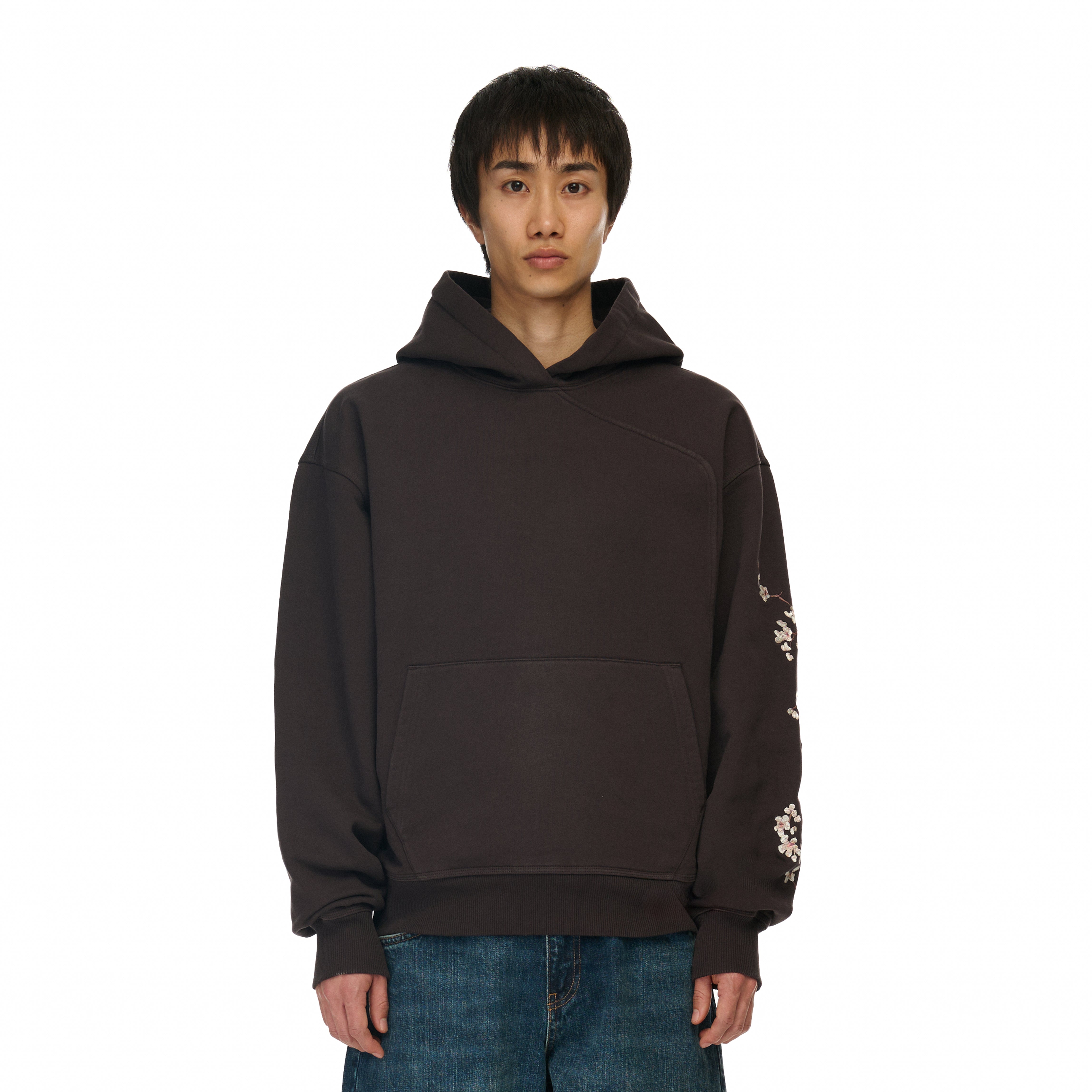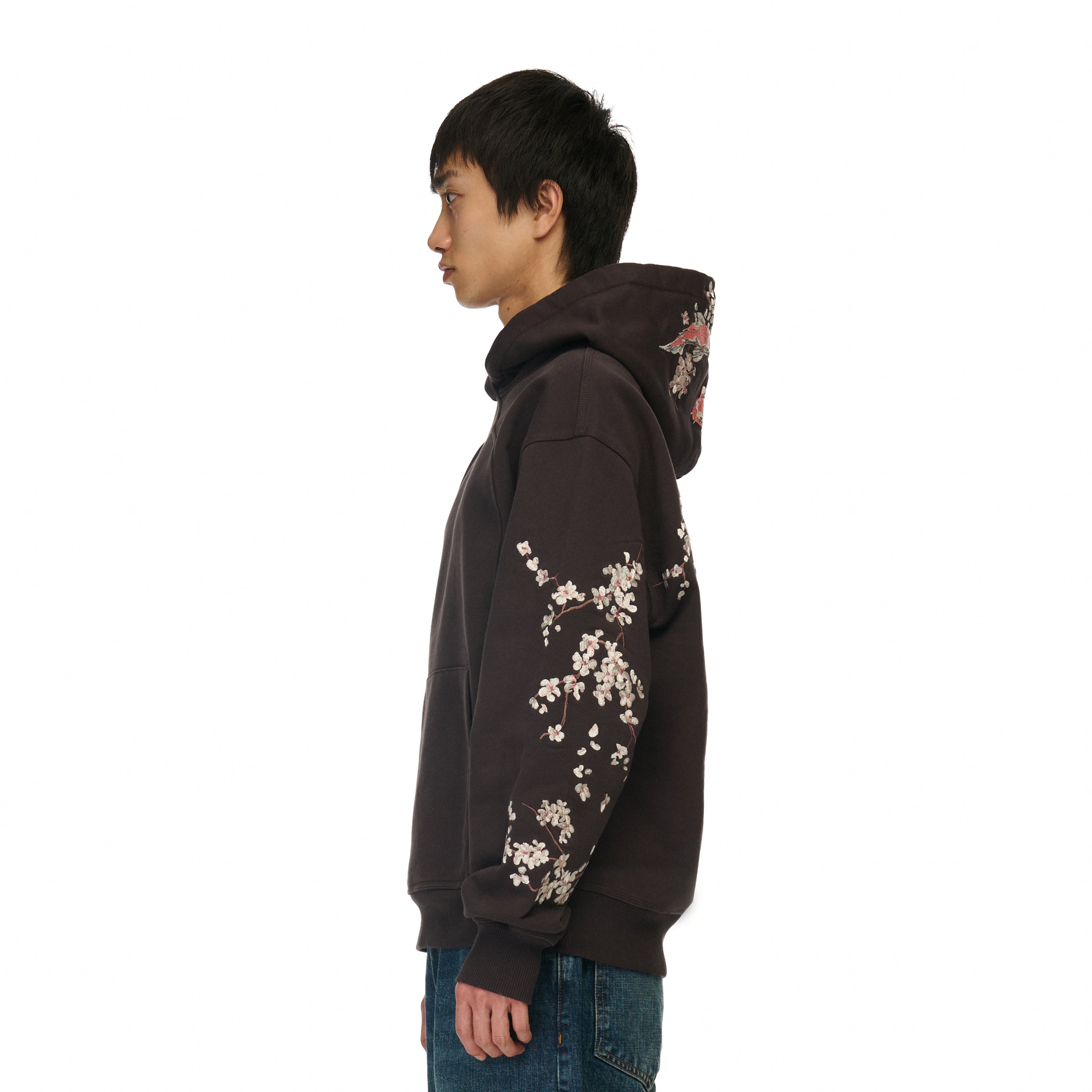 460gsm brushed cotton / 100% preshrunk cotton / embroidery on back, sleeve and hood / piped-style front seam / fits true to size