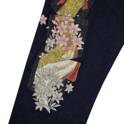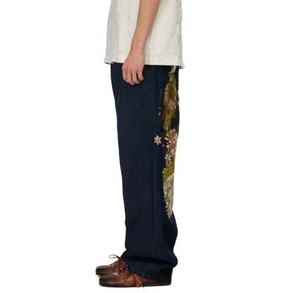 14,5oz denim / 100% cotton / different fabric on belt and front pockets / pocket details on back / embroidery on back / wash inside out / balloon fit / fits true to size