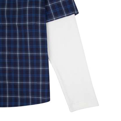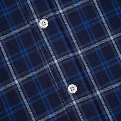 plaid popeline fabric / 100% cotton / waffle sleeves (100% cotton) / embroidery on back / custom buttons / curved hem / relaxed fit / fits true to size