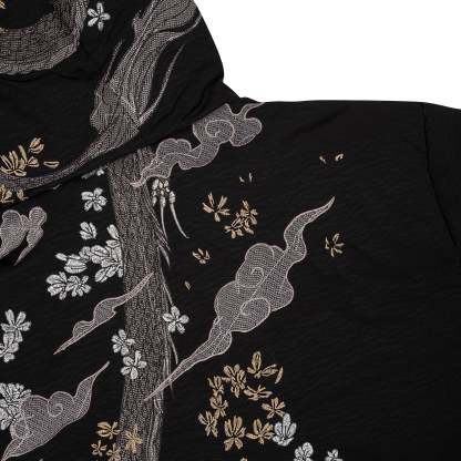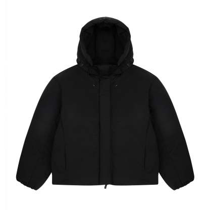 117gsm parachute fabric / duck down filling / 100% nylon / wind- and waterproof / polyester lining / embroidery on back and hood / with JKJ zipper and velcro / fits true to size