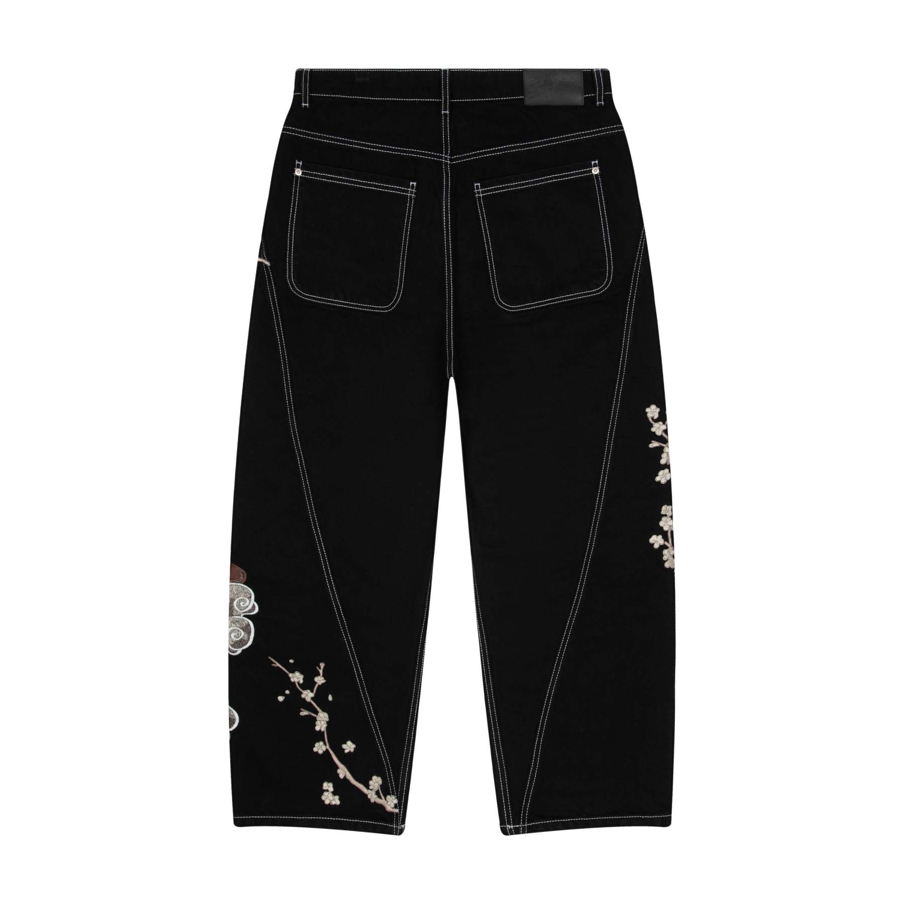14oz denim / 100% cotton / seams on back / embroidery on front and back / embroidered leather patch / custom button / wash inside out / fits true to size