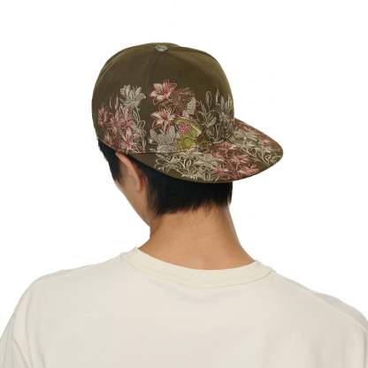 gabardine fabric / embroidery on front, back panels and visor / custom button on top