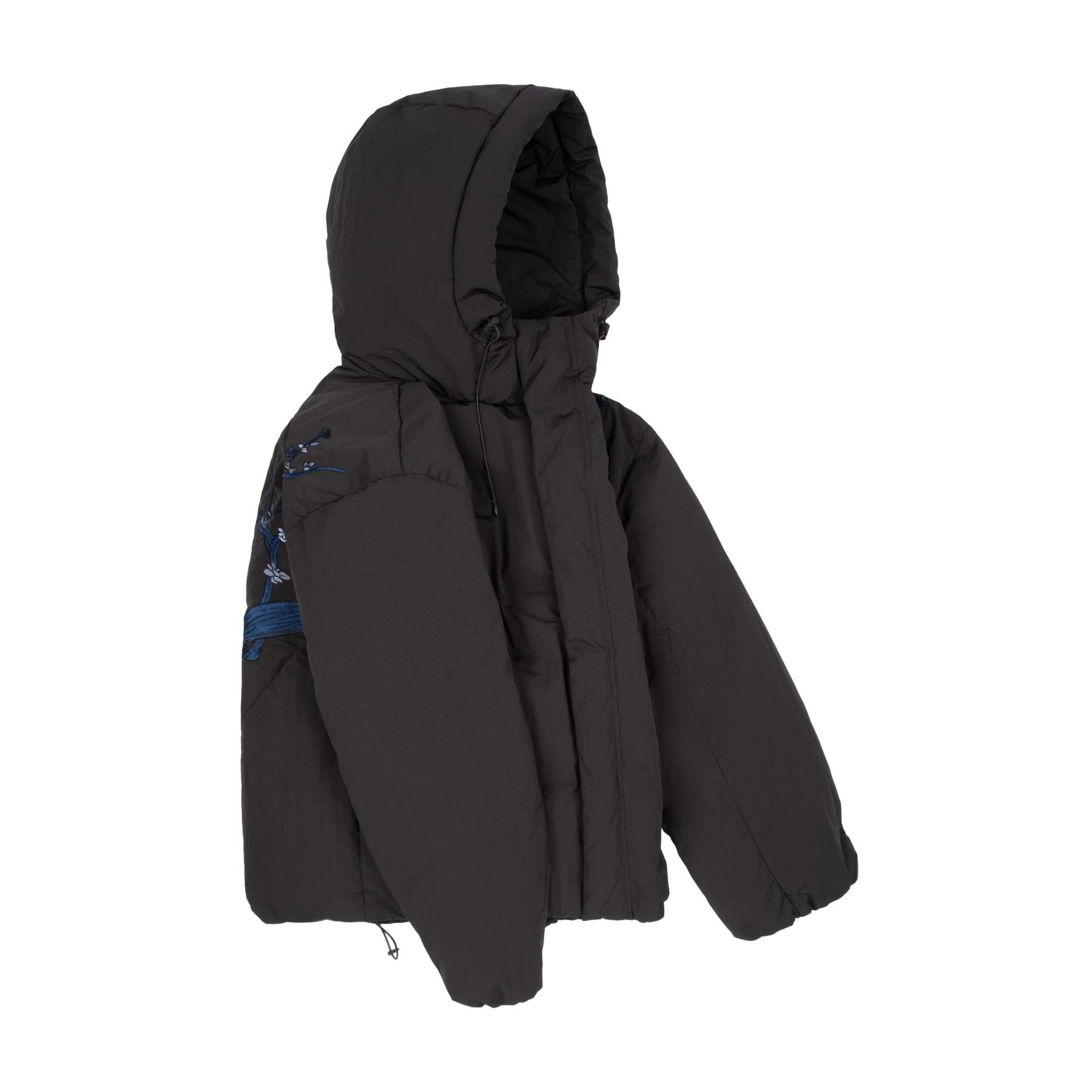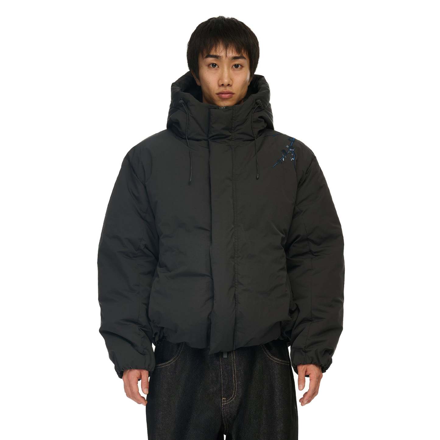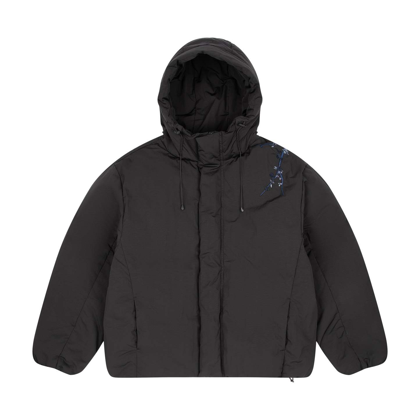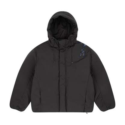 117gsm parachute fabric / duck down filling / 100% nylon / wind- and waterproof / polyester lining / embroidery on front and back / with JKJ zipper and velcro / fits true to size