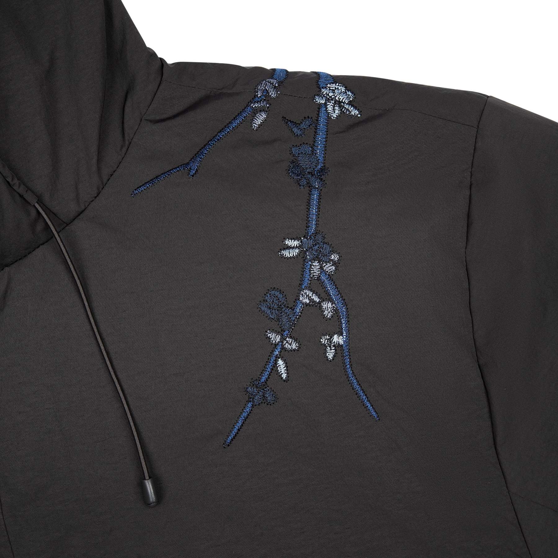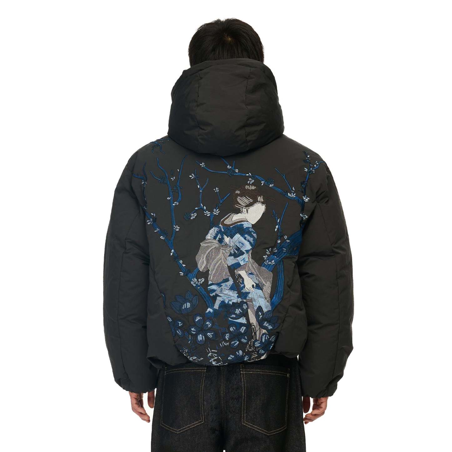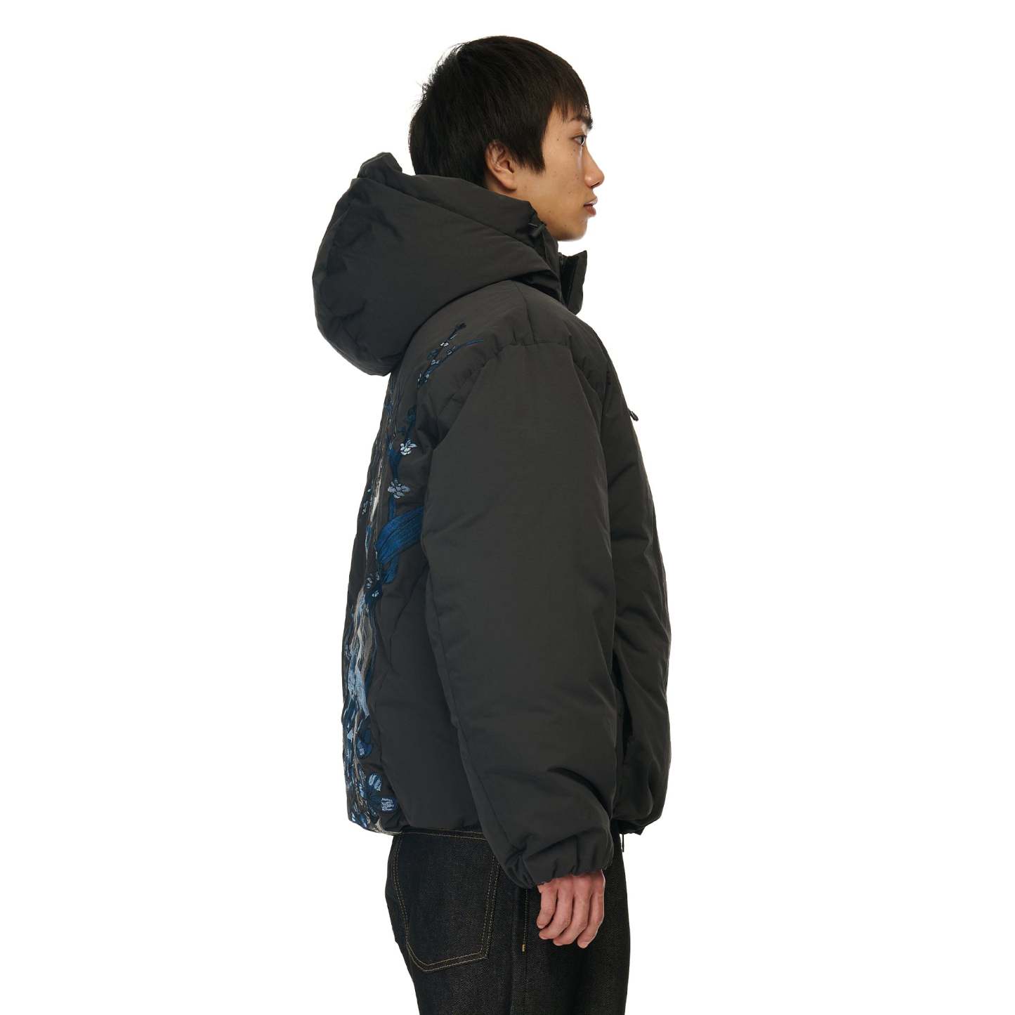 117gsm parachute fabric / duck down filling / 100% nylon / wind- and waterproof / polyester lining / embroidery on front and back / with JKJ zipper and velcro / fits true to size