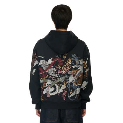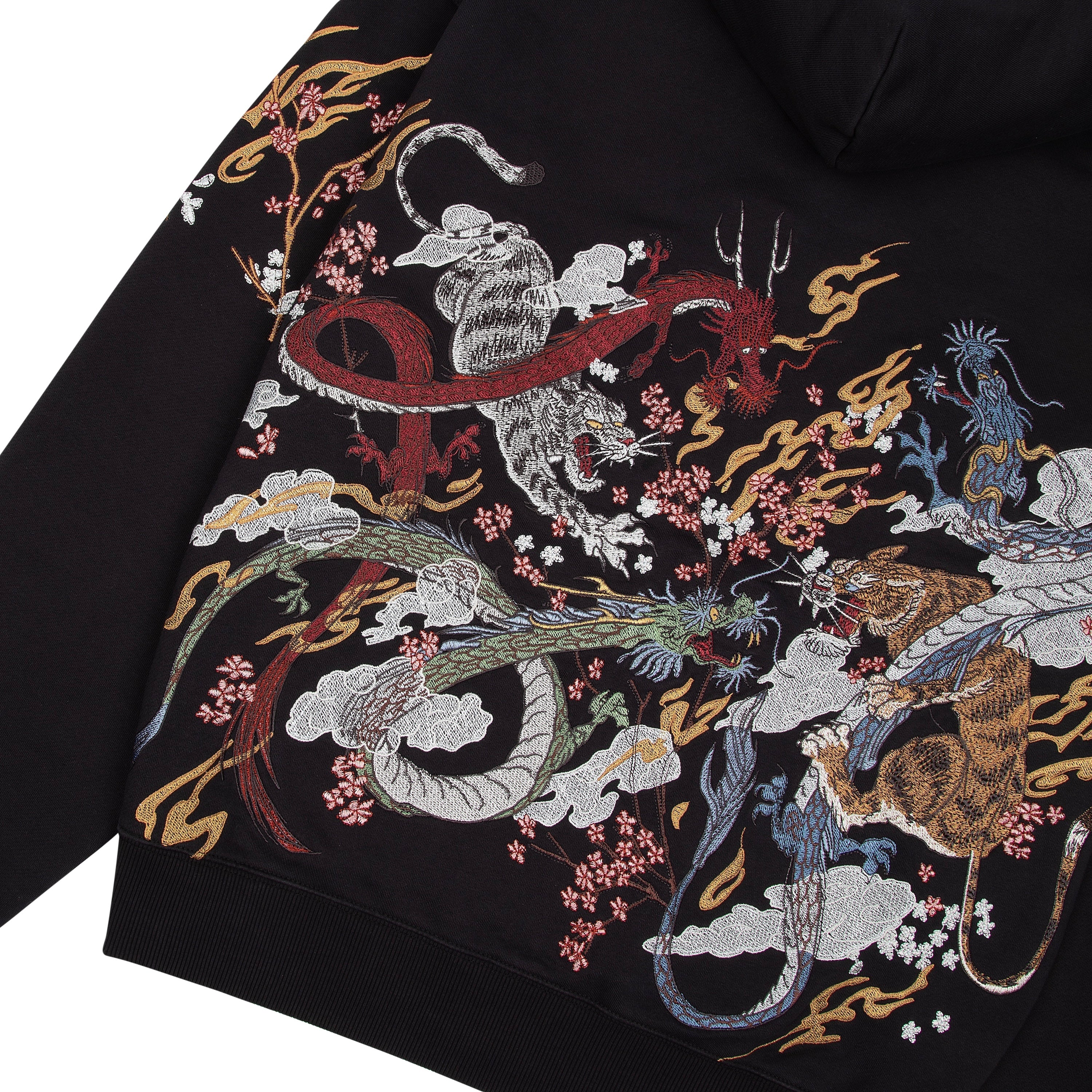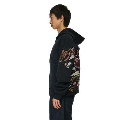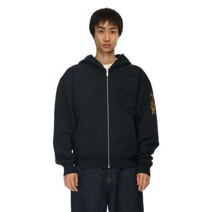 460gsm / 100% preshrunk cotton / embroidered patch on front / embroidery on back and sleeves / with double-slided YKK zipper / without cord / fits true to size
