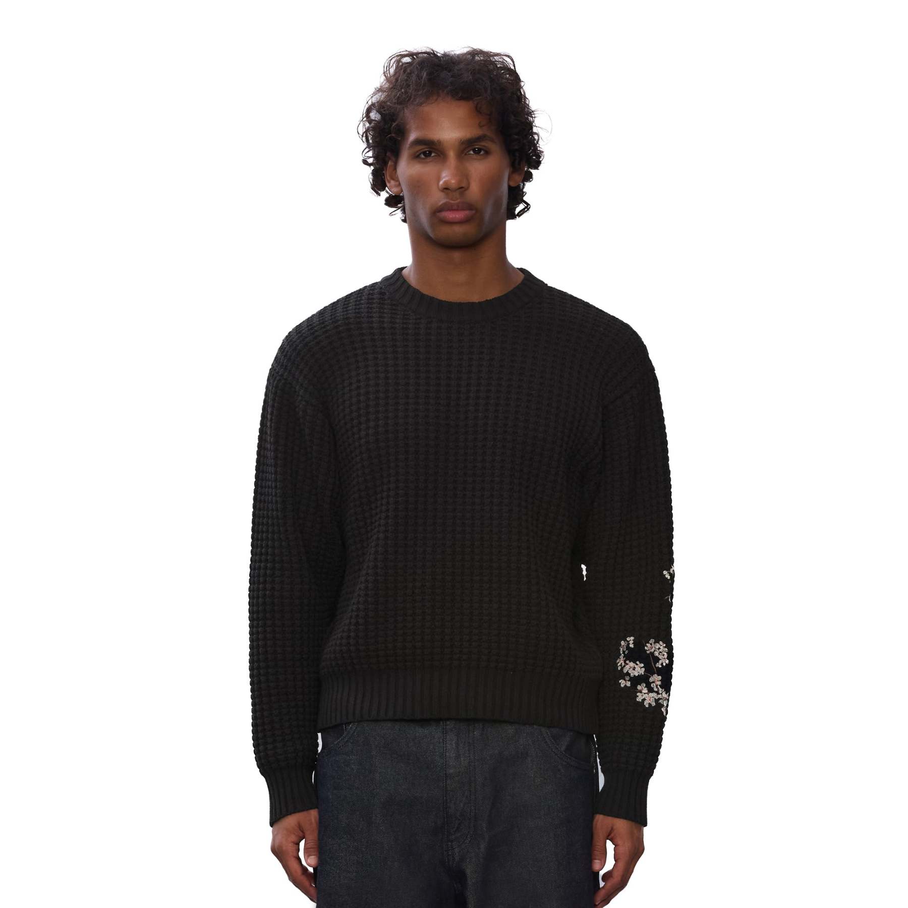 50% cotton 50% polyester / heavy weight knit / embroidery on back and sleeve / cropped fit / fits true to size / *may arrive after christmas