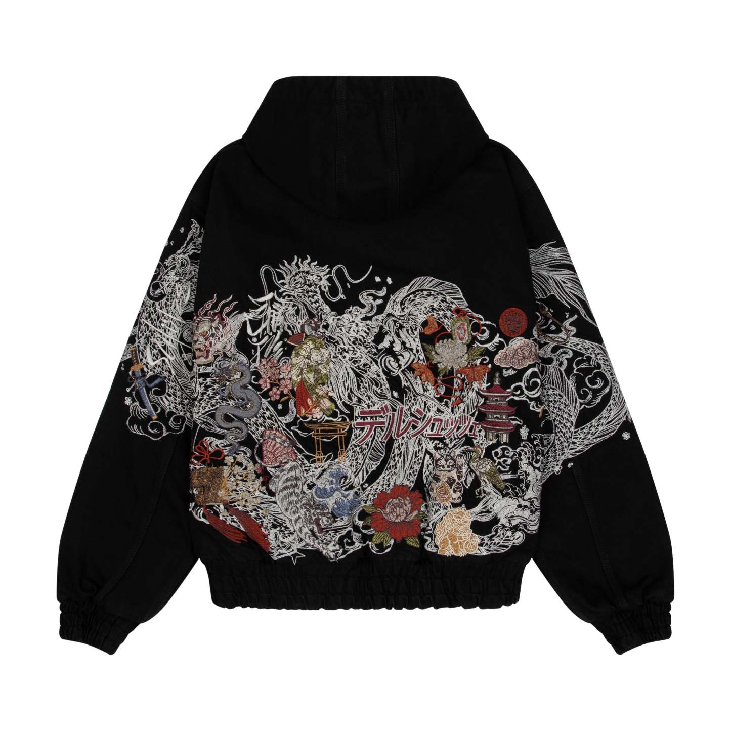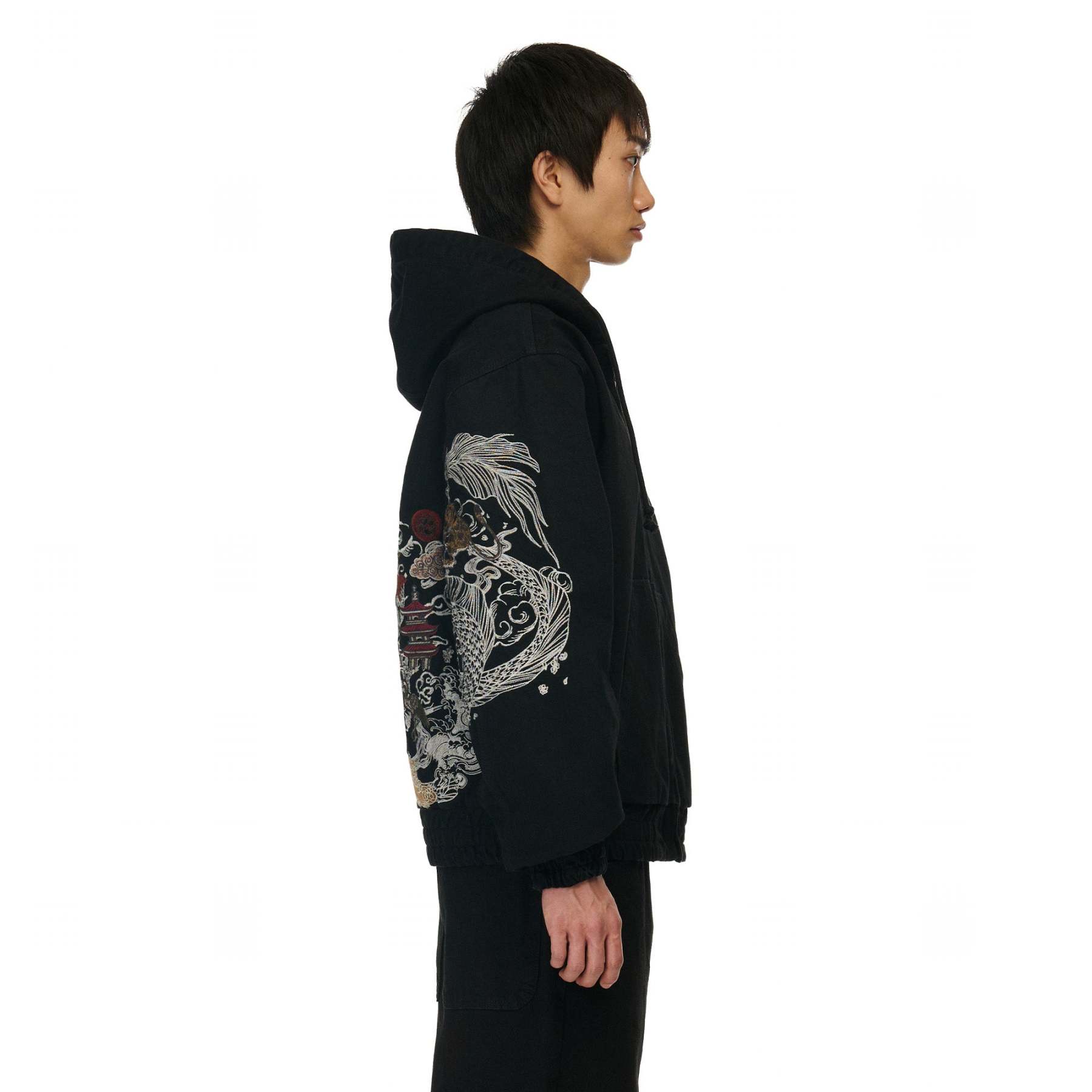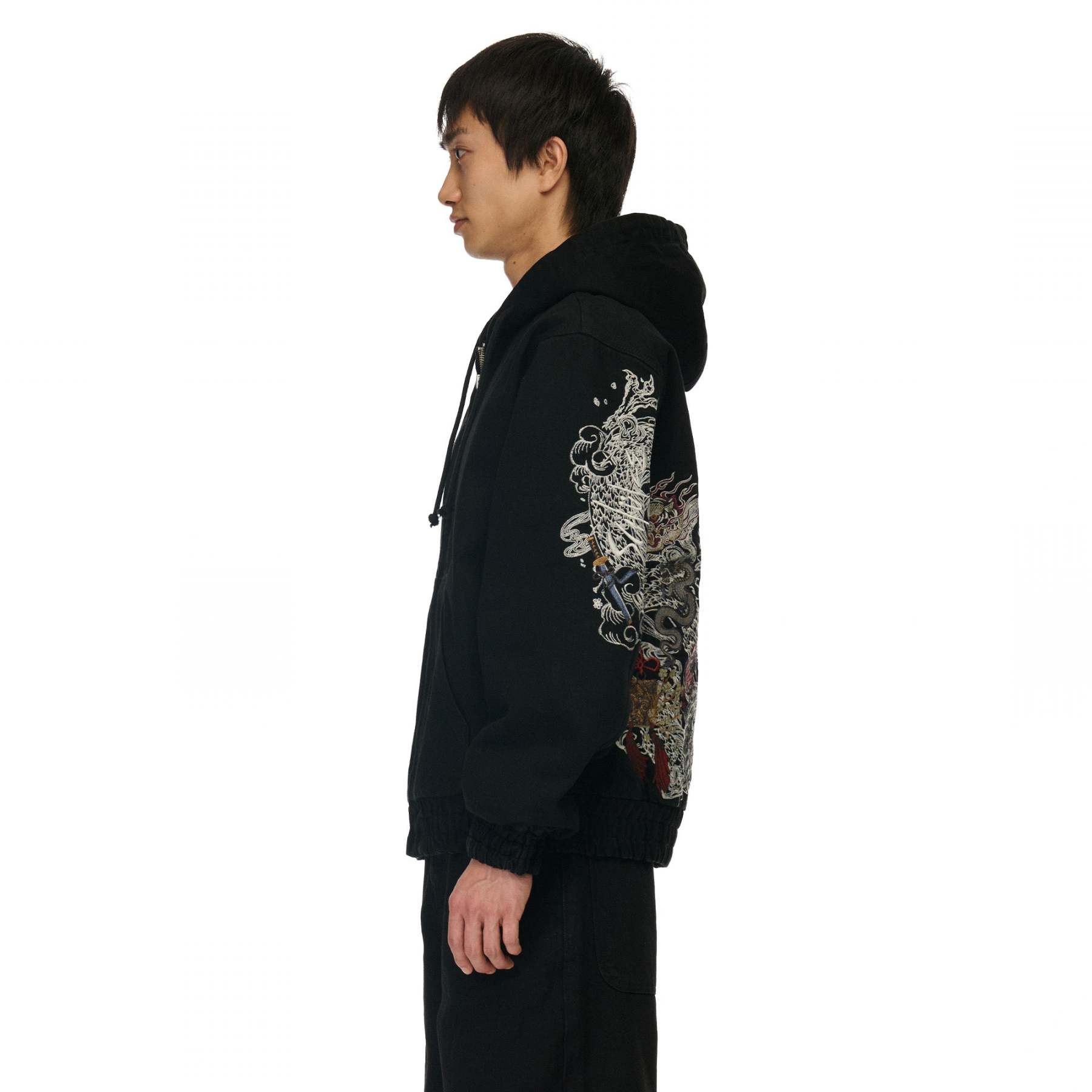 14oz denim / 100% cotton / quilted pattern lining / pocket inside / embroidery on back and sleeve / with YKK zipper / fits true to size
