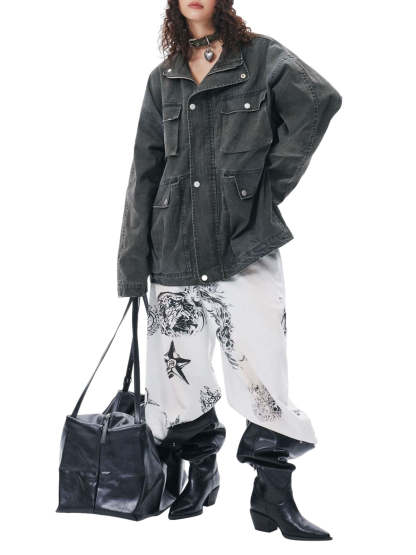 Retro Washed Distressed Multi-Pocket Work Jacket